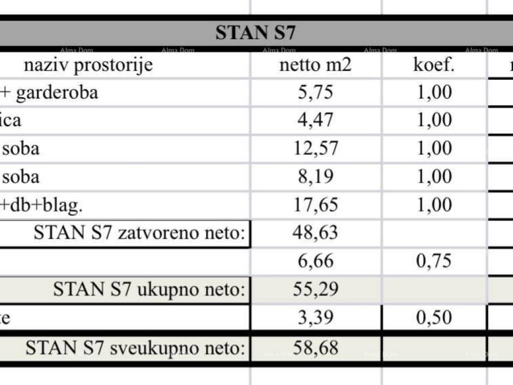 Pula!We offer an apartment on the 1st floor of a multi-family building with an elevator. The apartment will consist of an entrance hallway + wardrobe, 2 bedrooms, a bathroom, a kitchen with a dining area, a living room, and a loggia.EQUIPMENT:- Electric underfloor heating in the bathroom- Ariston Velis electric water heater- Anti-burglary entrance door- Inverter air conditioning unit- Ceramic tiles- Laminate flooring- Internal white room doorsThe apartments are sold finished, on a "turnkey" basis.Excellent location. Close to a shopping center and the city center of Pula - 1 km away.The building will have two entrances, two elevators, and 6 floors.More available apartments are on offer.The apartment includes a storage room of 3.39 m², as well as a parking space, which are included in the price of the apartment.*VAT is included in the price.The planned completion of construction work is early 2026.Info:Azra Valjevac+385 91 611 5706azra@almadominvest.com