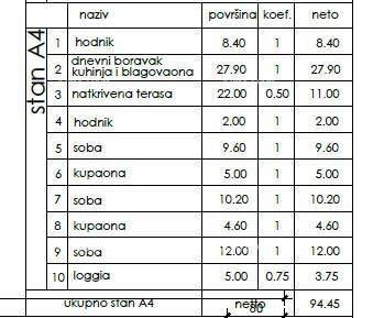 New Project – Pula!Building B consists of three floors and a total of four apartments, designed according to modern standards of comfort and functionality.Apartment A4, with an area of 94.45 m2, is located on the 2nd floor of the building and consists of:- hallway- 2 bathrooms- 3 bedrooms- kitchen with dining area and living room- covered terrace- loggia.Electric blinds, underfloor heating in the bathroom.Thermal facade. Sunny side.A parking space is offered with the apartment (for an additional fee), with the option to choose between a covered or uncovered space.Quality construction, modern materials, and a carefully designed floor plan make these apartments an excellent choice for family living, vacation, or investment.Planned completion of construction: end of 2026.For any additional information and to view the apartment, please contact:Azra +385 91 611 5706 +385 98 420 885 azra@almadominvest.com