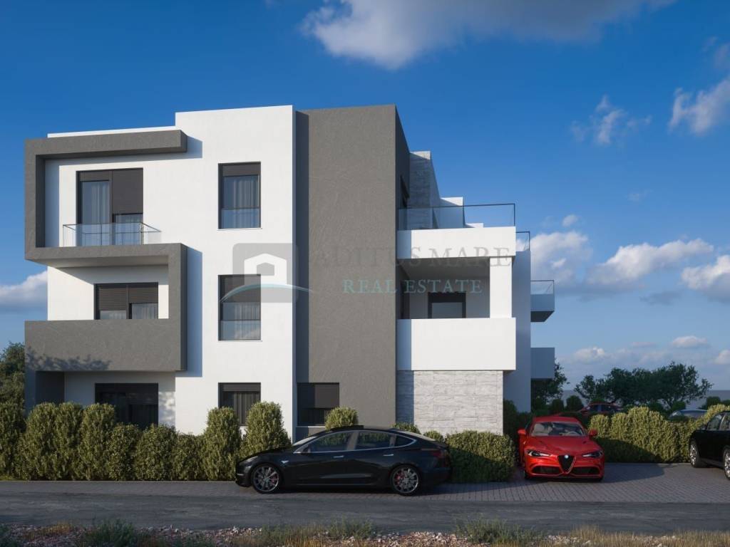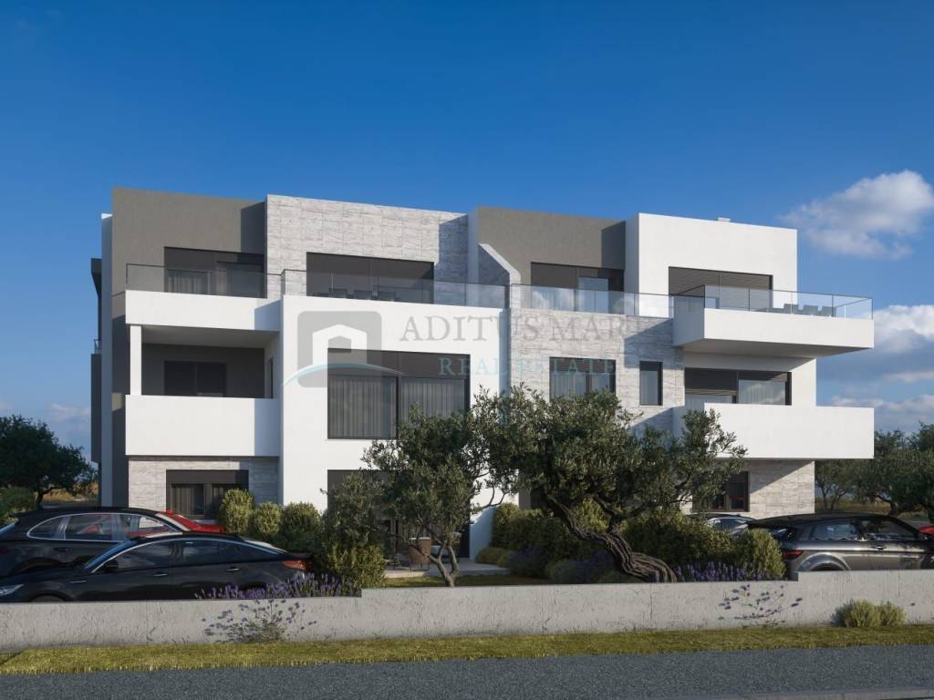 Dvojni objekt, s ukupno deset stambenih jedinica, udaljen 80 m od mora, predivnih plaža i svih popratnih sadržaja. Objekt se sastoji od prizemlja i dva kata. Dokumentacija i vlasništvo uredni. Objekt je u procesu izgradnje te je završetak radova planiran do ljeta 2025. godine. Penthouse SJ4 (79.44 m2) - 375.000,00 Stambena jedinica SJ4 nalazi se na drugom katu objekta te se sastoji od hodnika, tri spavaće sobe, dvije kupaonice, dnevnog prostora, kuhinje i blagovaone s izlazom na terasu (27.88m). Stan je korisne neto površine 79.44 m (terasa 27.88 m2 i balkon 1.01 m2 nisu uračunati). Stanu pripadaju dva parking mjesta. Za sve ostale informacije te dostupnost preostalih stanova u zgradi, slobodno nas kontaktirajte.