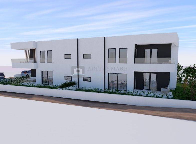 Na udaljenosti od mora koja iznosi 1100 m, počinje se graditi nova zgrada sa 4 stambene jedinice. Idealna mirna lokacija, a opet u blizini svih popratnih sadržaja, okružena obiteljskim kućama i zgradama u kojima ljudi žive tijekom cijele godine.