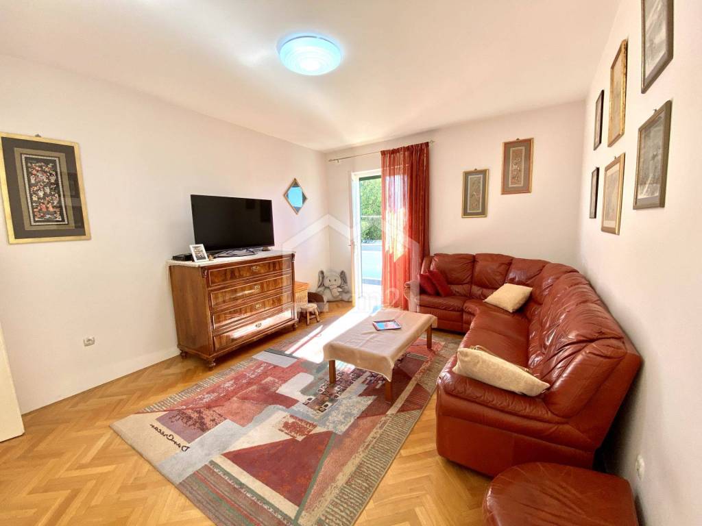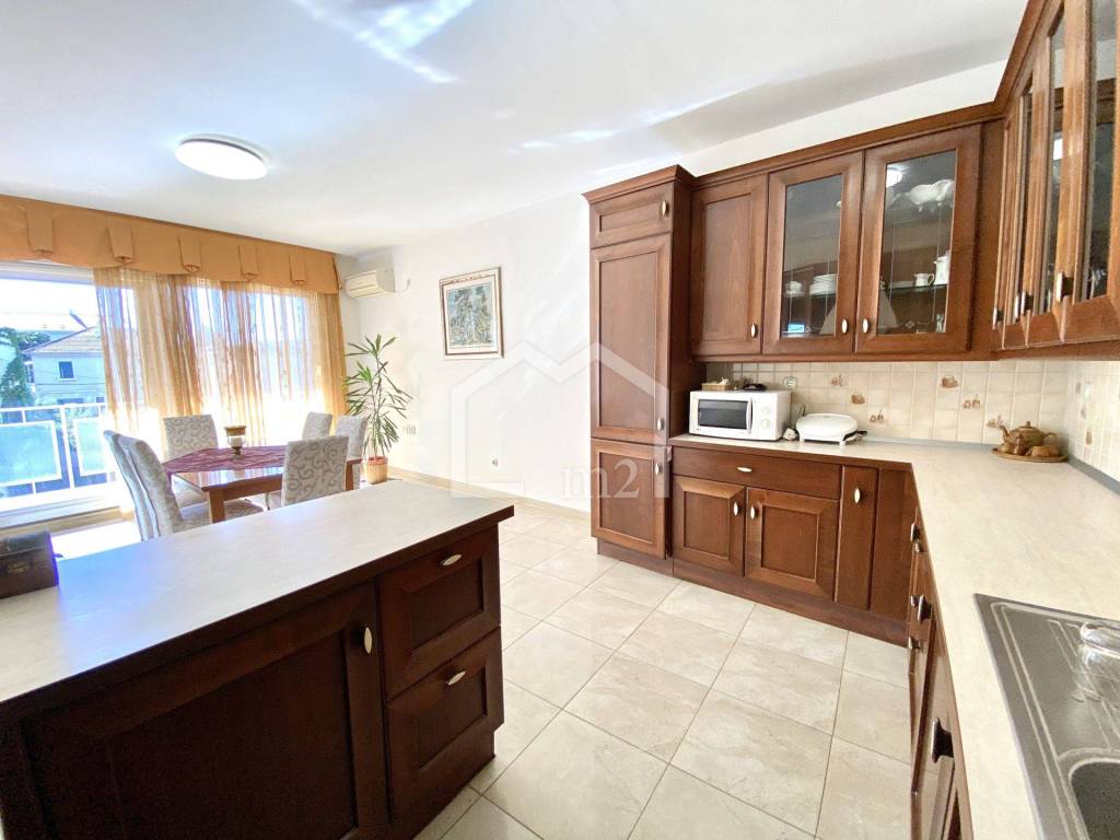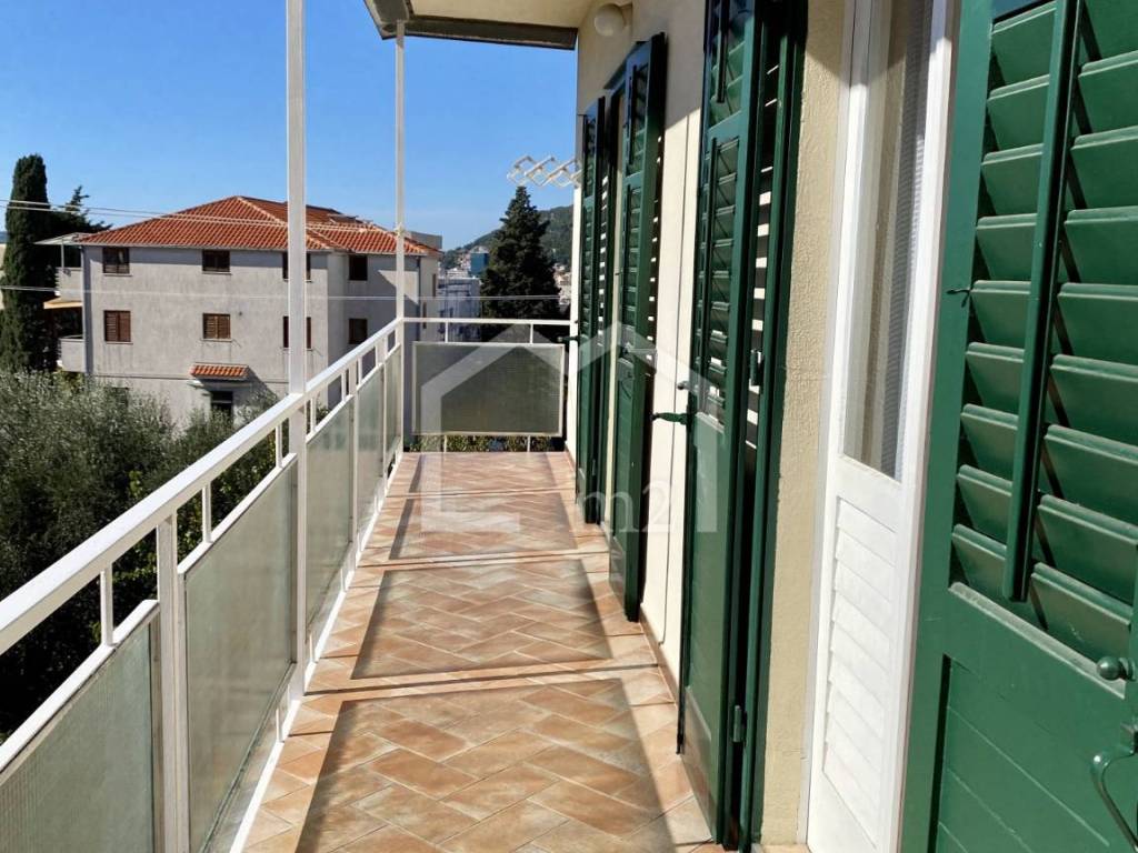 The apartment consists of an entrance hall, large kitchen with dining room, living room with exit to the loggia overlooking the city, Marijan forest park and has a few sea views, it has three bedrooms, two of which exits to a separate large terrace. It also has one smaller room that can serve as an office. The apartment has a storage room and fitted wardrobes and also has three units of air conditioning. Property to look at.