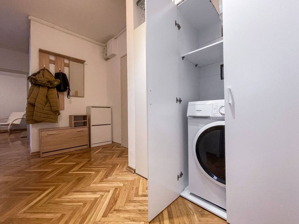 U hodniku se nalazi nova perilica rublja koja je ugrađena u element(ormar). Stan ima PVC stolariju, klima uređaj, stropno grijanje s regulatorima temperature u svakoj prostoriji. Stan je namijenjen za najam samcu ili bračnom paru. Dostupan je odmah.
