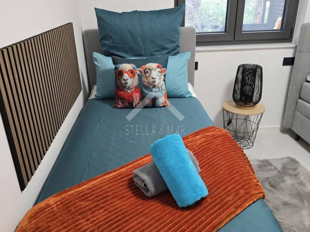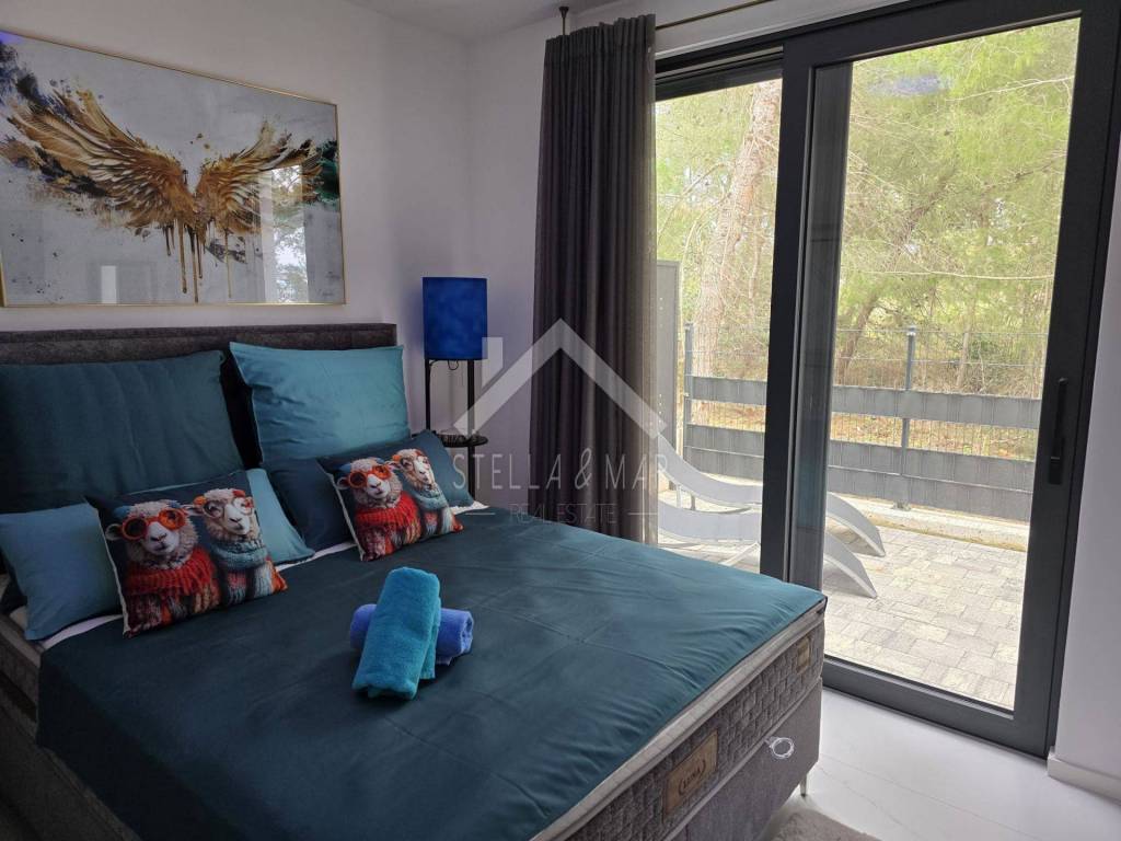 A beautiful apartment in a new building on the south side of the island of Vir is for sale. Located on the ground floor of a small residential building, only 40m from the sea with private access to the beach. It has a 23m2 garden and 2 parking spaces. Connected to city water and sewage.