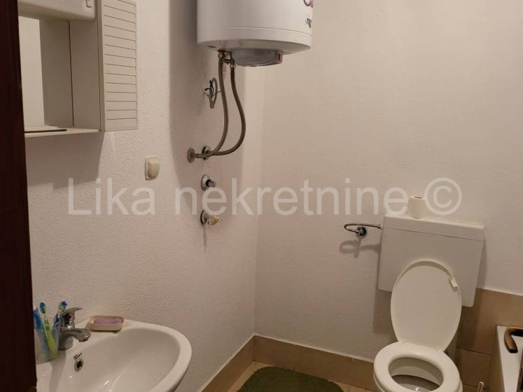 VODOTEČ ( Brinje ) - samostojeća kuća prizemnica 78 m2, građena na starim temeljima, podru, 12x6m, jedna etaža stambena, tavan preko cijele kuće. Stambeni dio sastoji se od hodnika, dvije spavaće sobe, ostave, kuhinje i dnevnog boravka, kupatila s wc-om. Iz hodnika stepenice za tavan ( na potezanje) . U podrum se ide iznana, struja trofazna, voda šterna ( treba postaviti hidrofor, cijevi za vodu razvedene po kući) Grijanje na drva, mogućnost centralnog jer su razvedene cijevi po podu. Uz kuću je pomoćna zgrada 14x5m, ( kolnica, štala, sijenik ) , građeno rije 50 godina, a kuća građena prije 14 godina. Uredno vlasništvo 1/1, bez tereta.