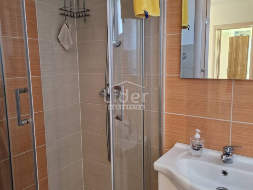 An apartment for sale in a newer commercial and residential building in Kampor. It is located on the second floor, facing southeast. It consists of a kitchen, dining room and living room with access to a balcony, two bedrooms and two bathrooms. It has a beautiful open view of the sea. The apartment also has 2 storage rooms on the ground floor of approximately 6 m2, as well as part of the garden and one parking space. A beautiful promenade leads from the house all the way to the town of Rab. The building is very beautiful and well maintained.