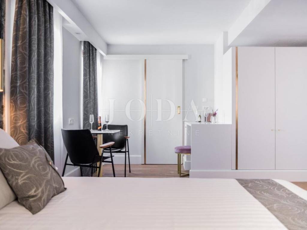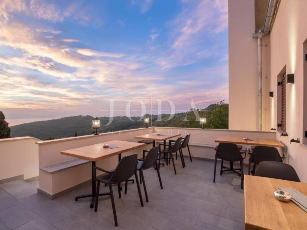 Ovaj prekrasan urbani Hotel smješten je na samom trgu srednjovjekovnog grada Labina koji obiluje kulturnom i graditeljskom baštinom. U blizini hotela možete posjetiti brojne starogradske znamenitosti poput narodnog muzeja, crkve, malog kazališta i uživati u razgledavanju starog grada i brojnih sadržaja koje nudi. Hotel je renoviran i u potpunosti opremljen,sa uhodanom djelatnosti te kao takav idealan kao investicija u turizam. Elegantan dizajn interijera sa rustikalnim detaljima oduševljavaju na prvi pogled.Hotel se sastoji od 8 spavaćih soba, 11 kupaona, kuhinjom, blagavaonom,coctail barom,recepcijom,uredskim prostorima i dodatnim prostorijama koje služe za poslovanje hotela te terase sa koje se pruža prekrasan pogled na kvarner. Sa idealnom klimom i pozicijom pruža mogučnost poslovanja tokom čitave godine te se svojim postojećim karakteristikama po želji može prenamjeniti u mali gradski boutique hotel sa 2-3 aprtmana uz sobe i sve ostale sadržaje. Turistička sezona svake godine je sve uspješnija na području Istre što ovu nekretninu čini odličnom prilikom za budućeg kupca.