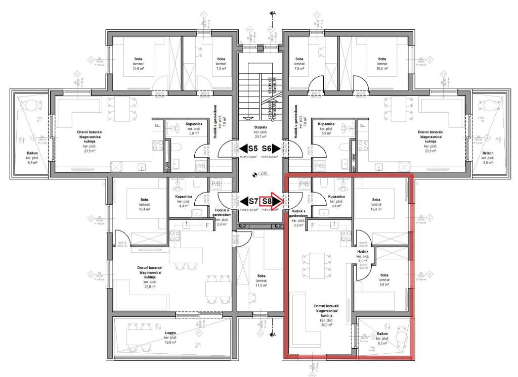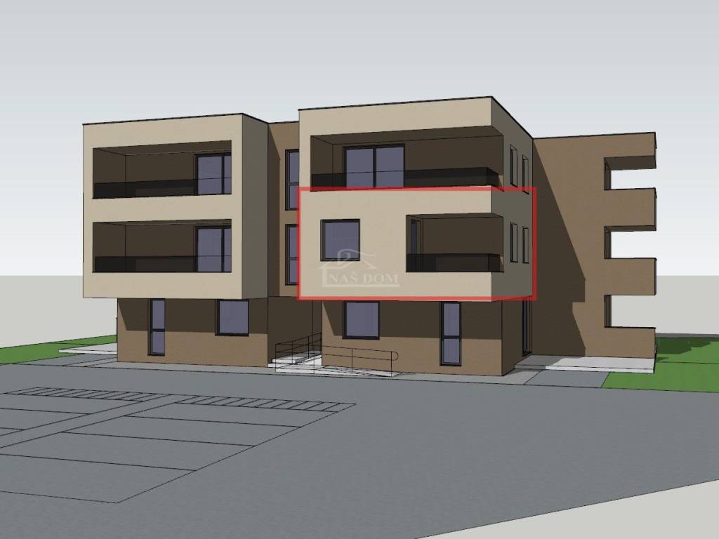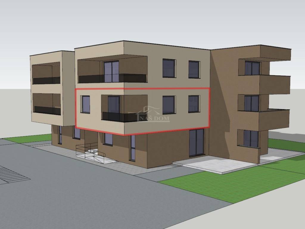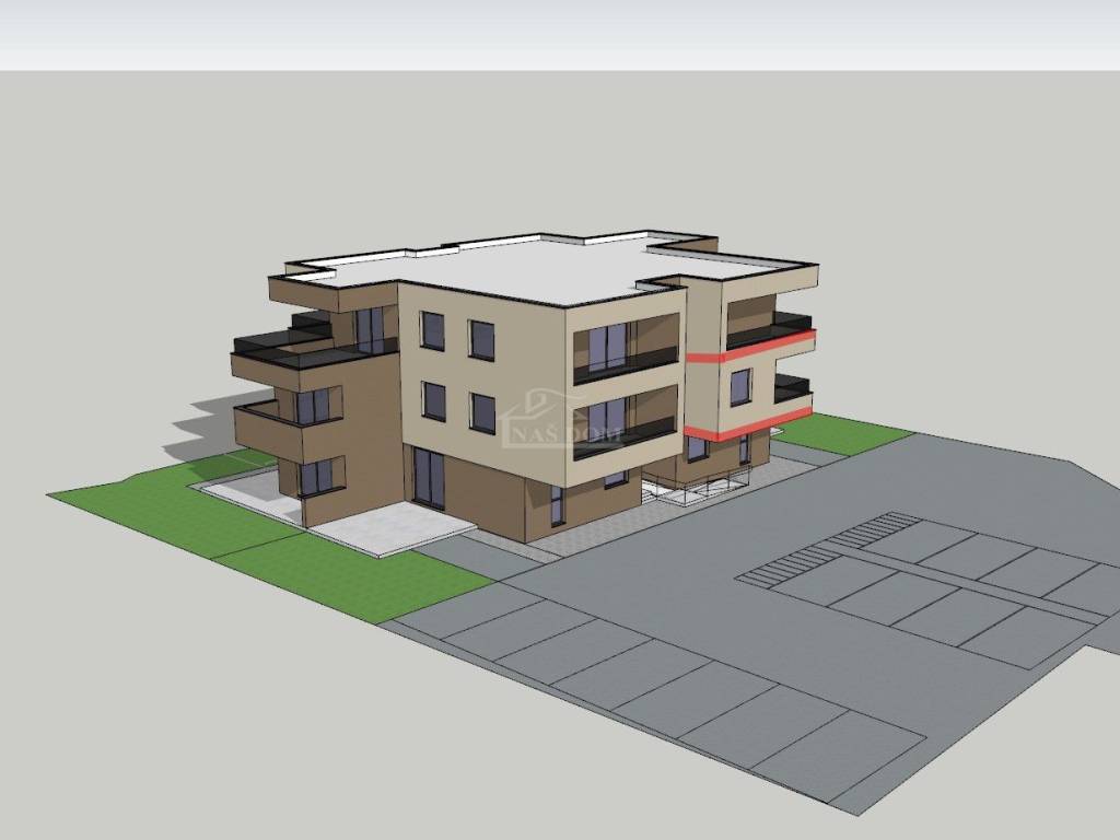 ВОДИЦЕ, здание в предпродаже / бронировании квартир, здание в стадии проектирования, начало строительства – апрель 2026 года, срок сдачи – лето 2027 года, предлагаем симпатичную маленькую двухкомнатную квартиру на первом этаже здания, площадью 55,70 м2, которая состоит из прихожей, ванной комнаты, спальни 1, спальни 2, кухни с обеденной зоной и гостиной, террасы и одного парковочного места перед зданием.