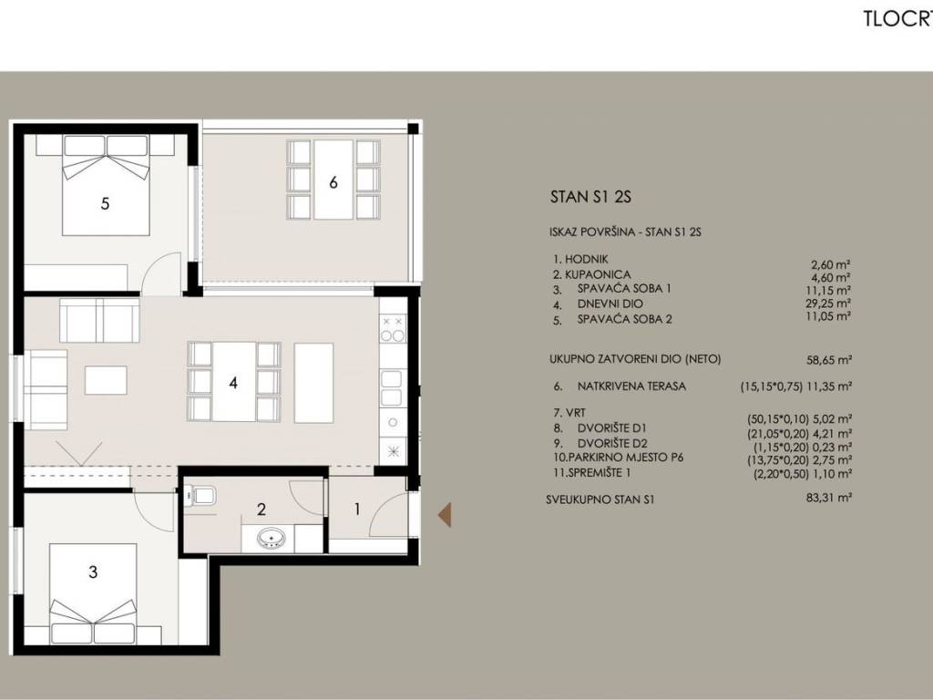 S1-83,31 m², dvije spavaće sobe, CIJENA 299.000,00 EURA