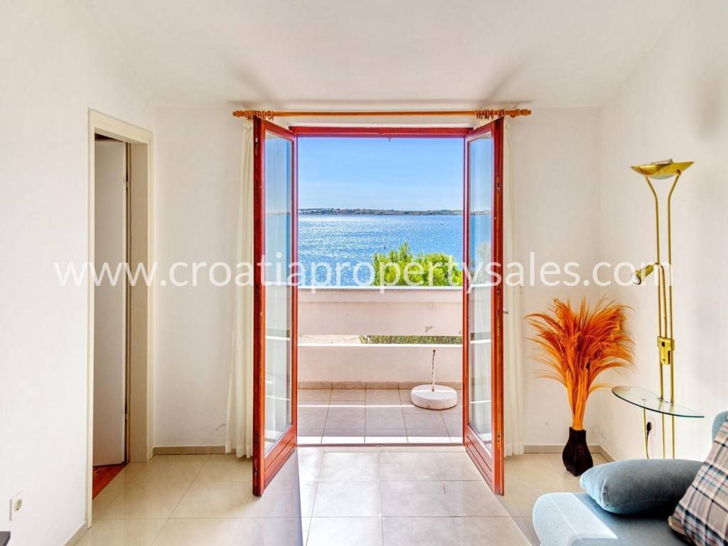 Well-built house with 12 apartments ready for tourism rental, located in a beautiful bay in the first row and south facing.It has 720m2 of interior space on a plot of 1300m2.The house is situated in a peaceful village 5 km from the historic city Nin and about 17 km from Zadar city.The house consists of 12 one-bedroom and two-bedroom apartments and is surrounded by a landscaped garden and views over the sea. The coastline is dominated by natural coves and hidden beaches with pine forest as well as urban beaches. Thanks to the natural and climatic advantages, the territory has been inhabited for more than 10 000 years, as evidenced by numerous archaeological remains from the ancient past.Croats moved to the territory of the village as early as the 7th century AD and there are ancient and Roman remains.Cultural heritage is also rich by its five different churches that come from the 11th, 12th, 13th, 17th and 18th centuries.