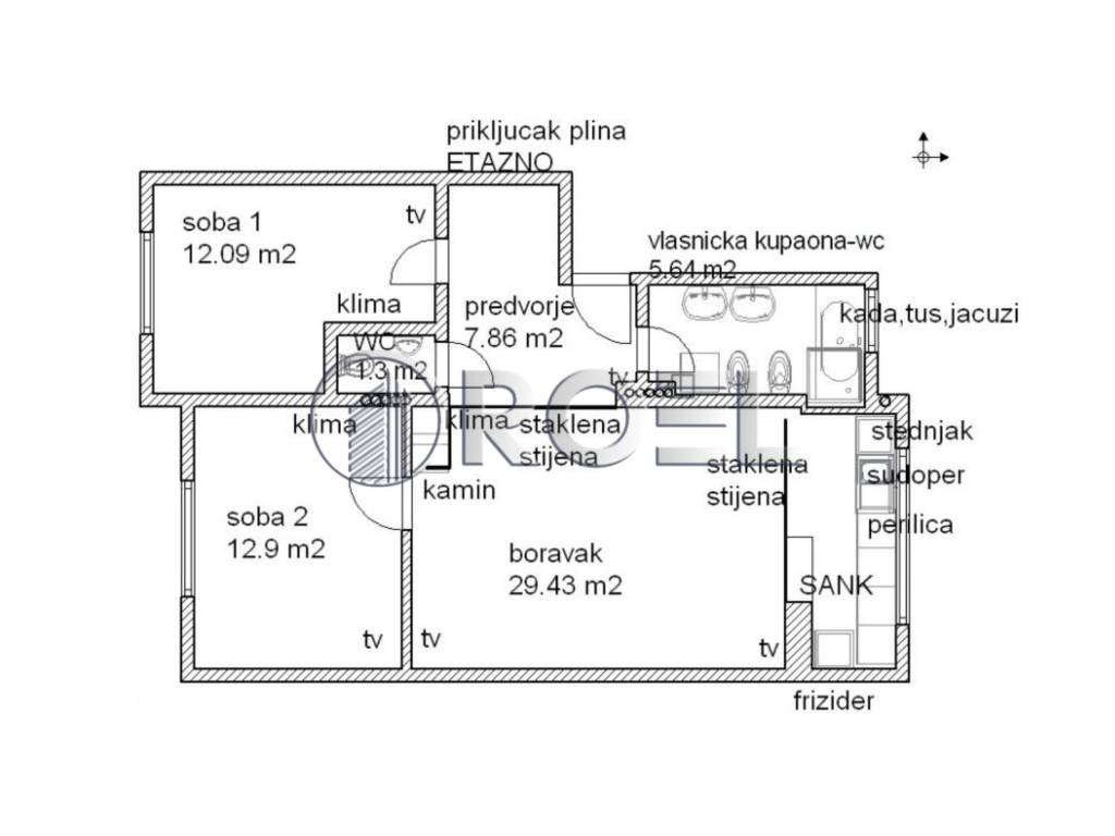 A modern and fully furnished three-bedroom apartment of 72 m2 is for sale in an attractive location in Zagreb, Trnje Sigečica. The apartment is located on the first floor of a neat residential building with a total of five floors, is single-storey and oriented to the east and west. The property was completely renovated in 2025 and is equipped with modern furniture, gas central heating, air conditioning, security doors and a fireplace. It consists of three bedrooms, a bathroom with toilet and an additional toilet, and it also has a practical storage room on the ground floor of approximately 3 m2. The apartment is located in a quiet neighborhood with always available parking spaces in a paid public parking lot, in the immediate vicinity of a school, tram and all important amenities, which makes it an ideal choice for family life or investment. The ownership is clean, and all documentation is in order, including the title deed, building and use permit.