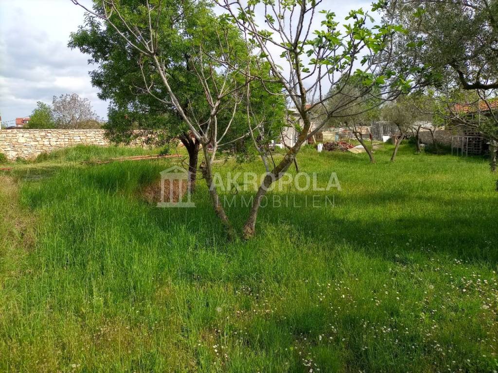 Peroj, građevinsko zemljište 950 m2 + put 58 m2. Legalizirana pomoćna stambena građevina od 30 m2 + 15 m2 studio (soba sa kupaonom). Idejni projekt za gradnju kuće.