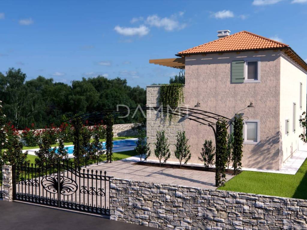 Дом занимает примерно 150 м2 жилой площади, распределенной на два этажа, и своим дизайном сочетает современную архитектуру с элементами традиционного истрийского стиля. На этом этапе строительства будущему покупателю предоставляется возможность адаптировать отдельные отделочные элементы, такие как выбор напольных покрытий, сантехники, внутренней столярки, цвета стен и некоторых деталей интерьера, создавая дом, полностью соответствующий личным вкусам и потребностям.