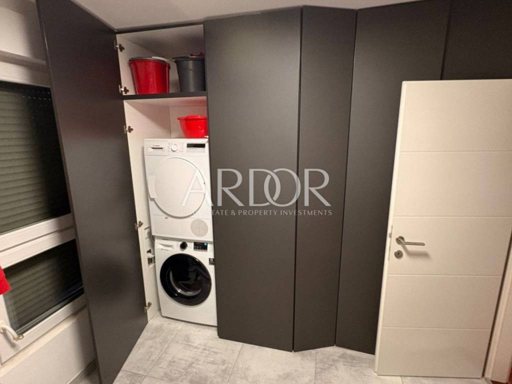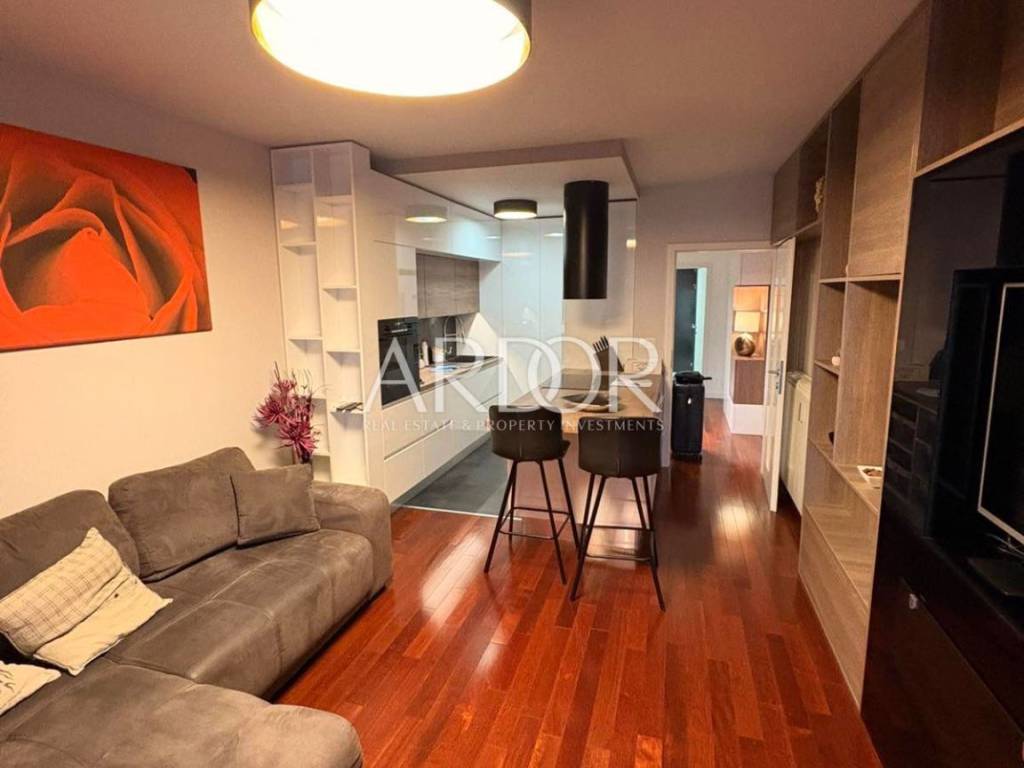 A premium, fully furnished apartment of 61 m² is available for long-term rent in Gornja Vežica. The apartment is located on the second floor of a residential building with a total of four floors and consists of one bedroom and a living room (1 bedroom + living room). The apartment is modernly and high-quality furnished and fully ready for occupancy. It is available immediately and is rented exclusively on a long-term basis to one person or a couple.