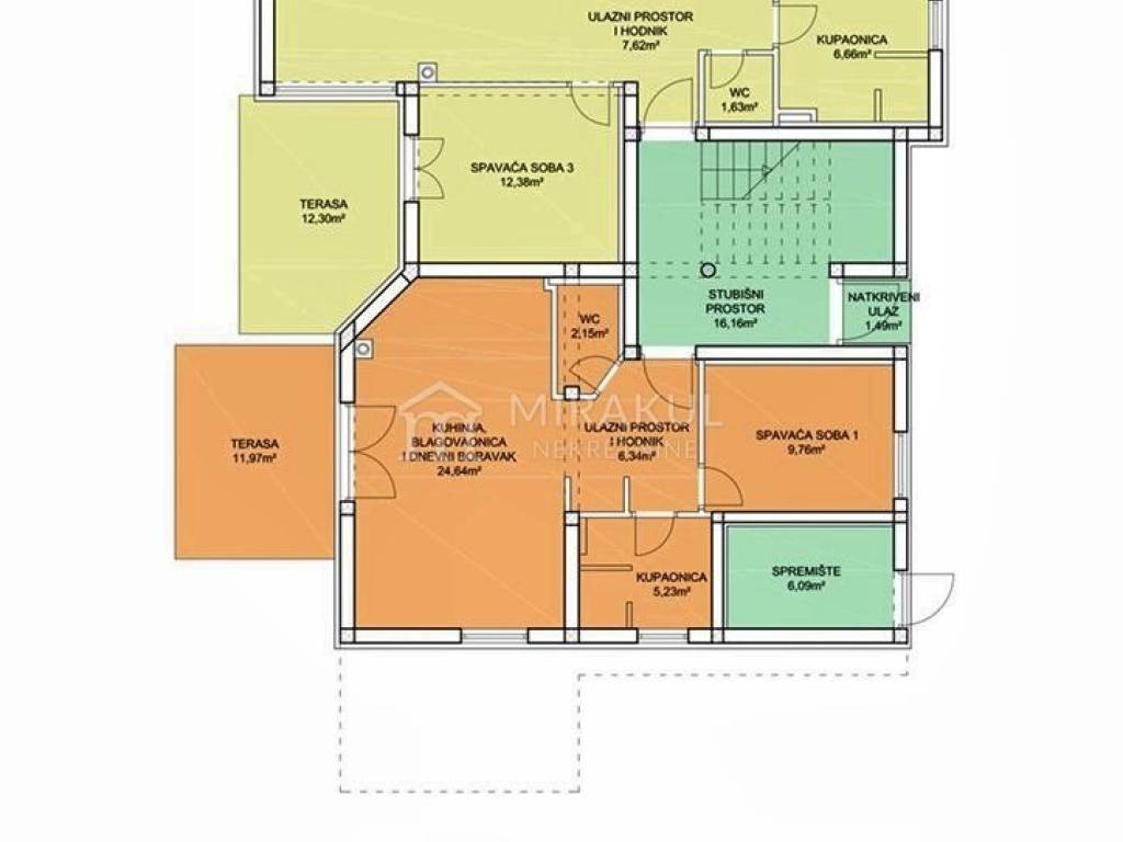 Each apartment has a terrace, a parking space in the yard and a shared storage room on the ground floor of the building.