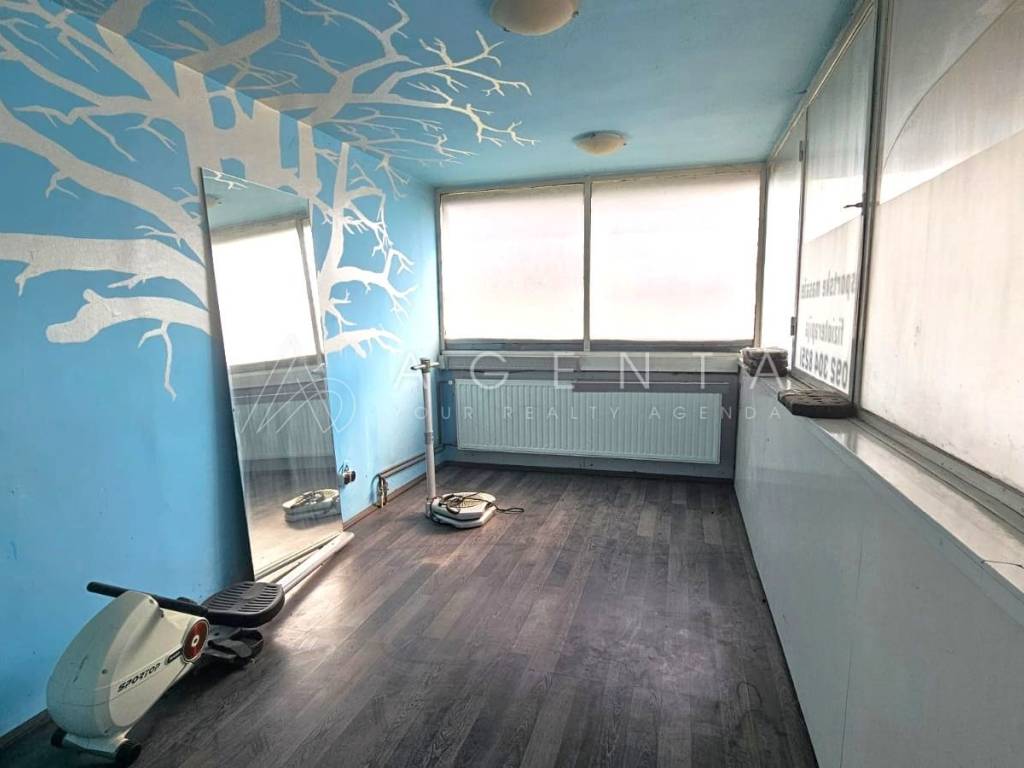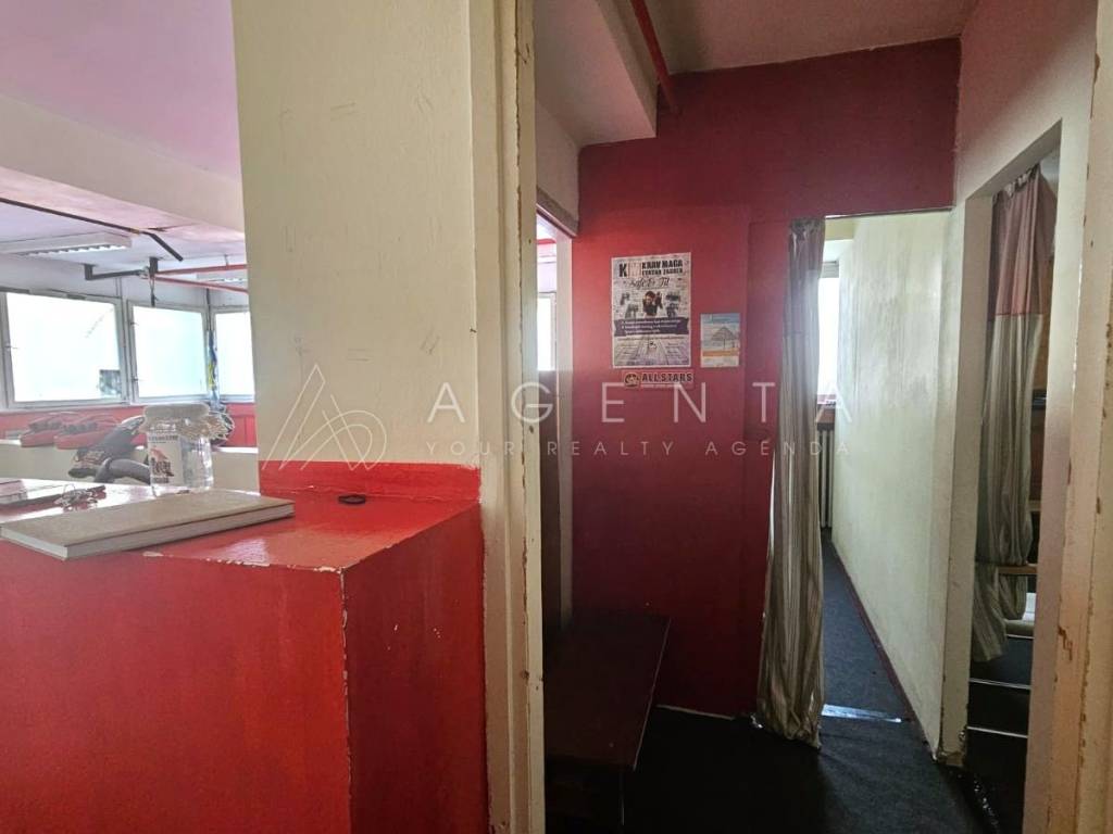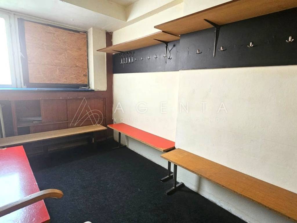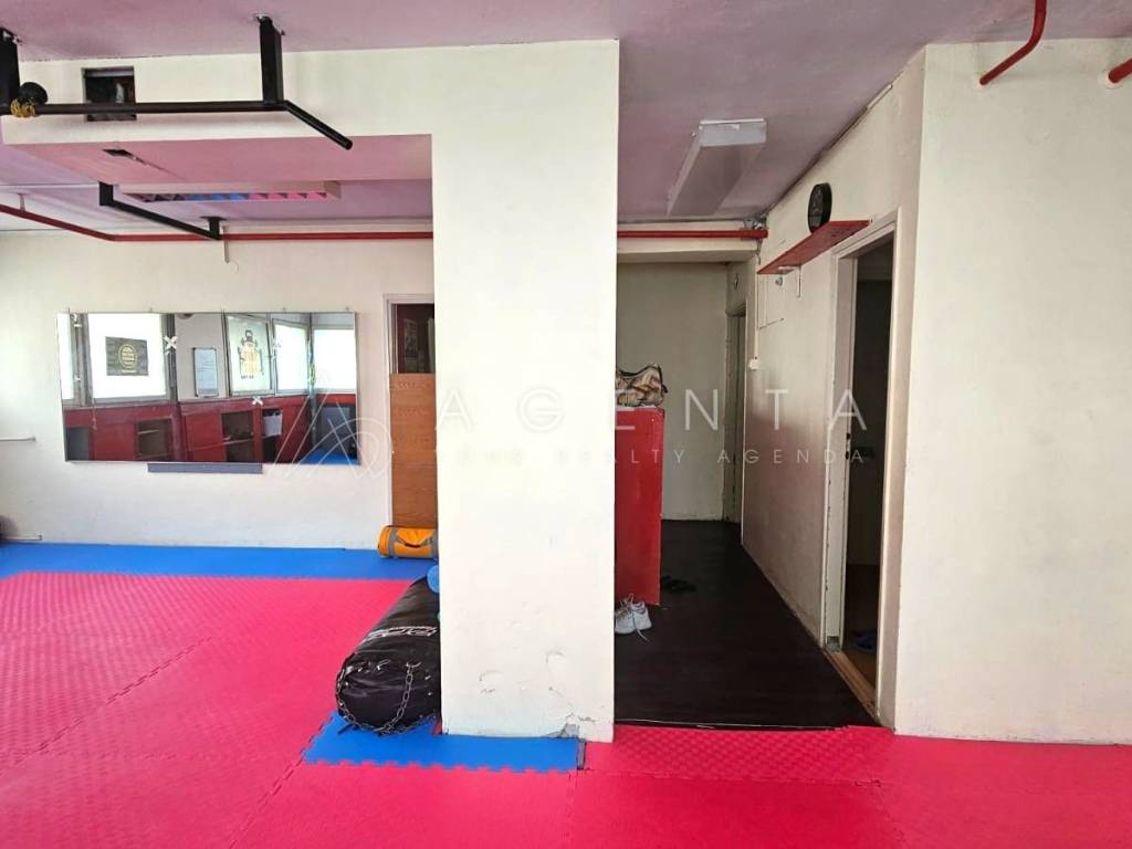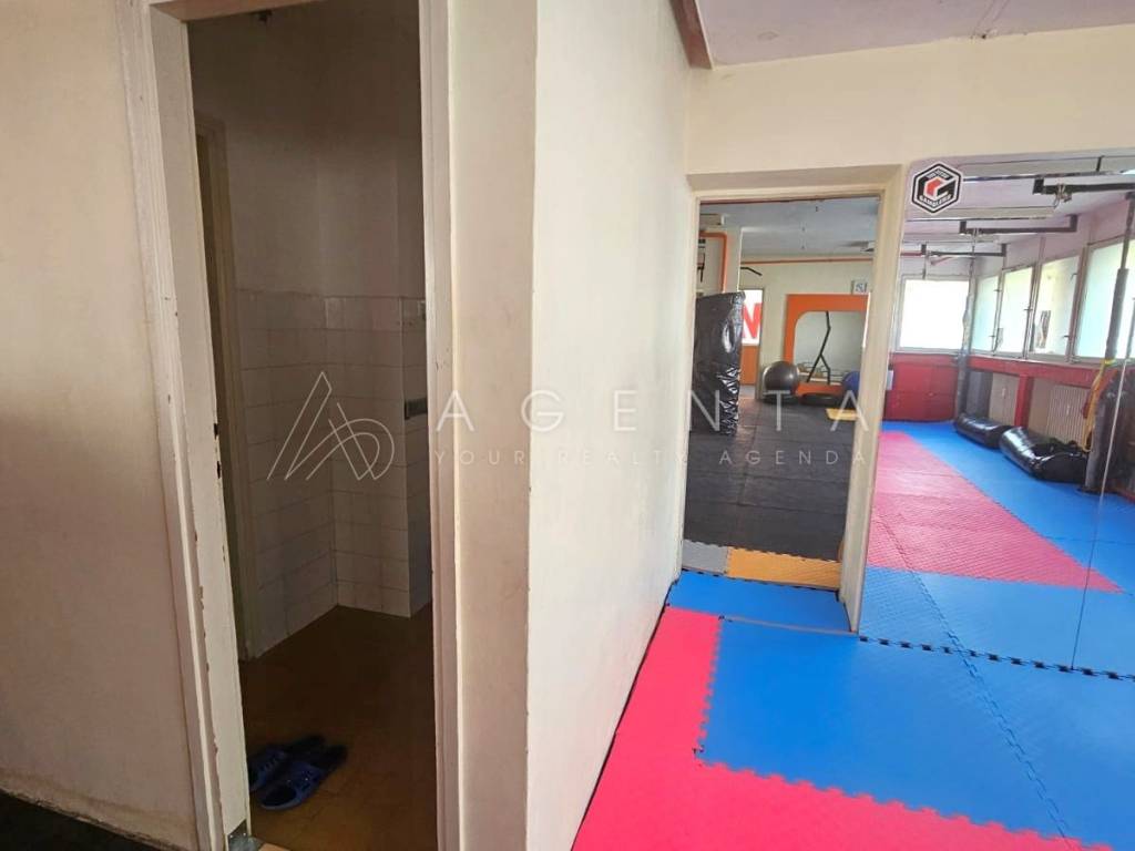 Sastoji se od ulaznog prostora, 6 prostorija različitih kvadratura, dva toaleta i garderobe s tuševima. Prostor je trenutno u najmu te služi za provođenje sportsko-rekreativnih aktivnosti, a najam se može nastaviti ukoliko je to budućem vlasniku opcija. U slučaju prenamjene u uredski prostor, svakako je potrebna adaptacija.