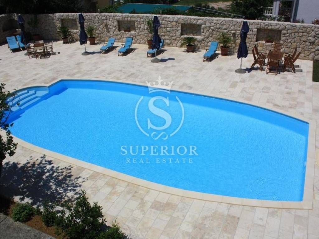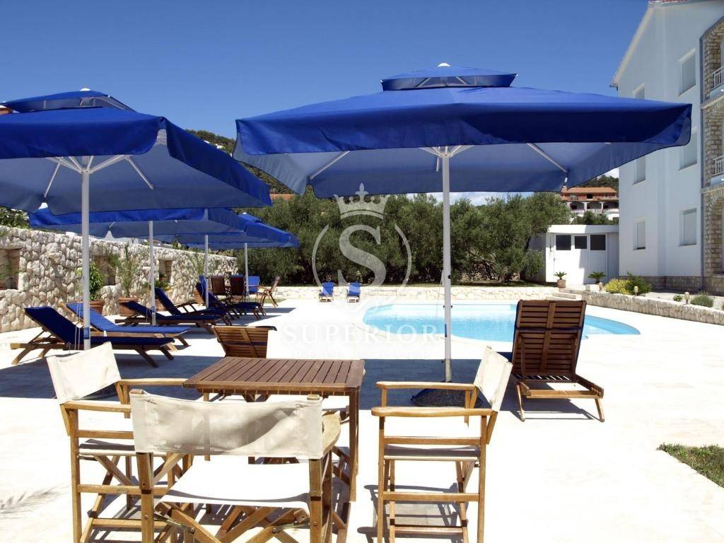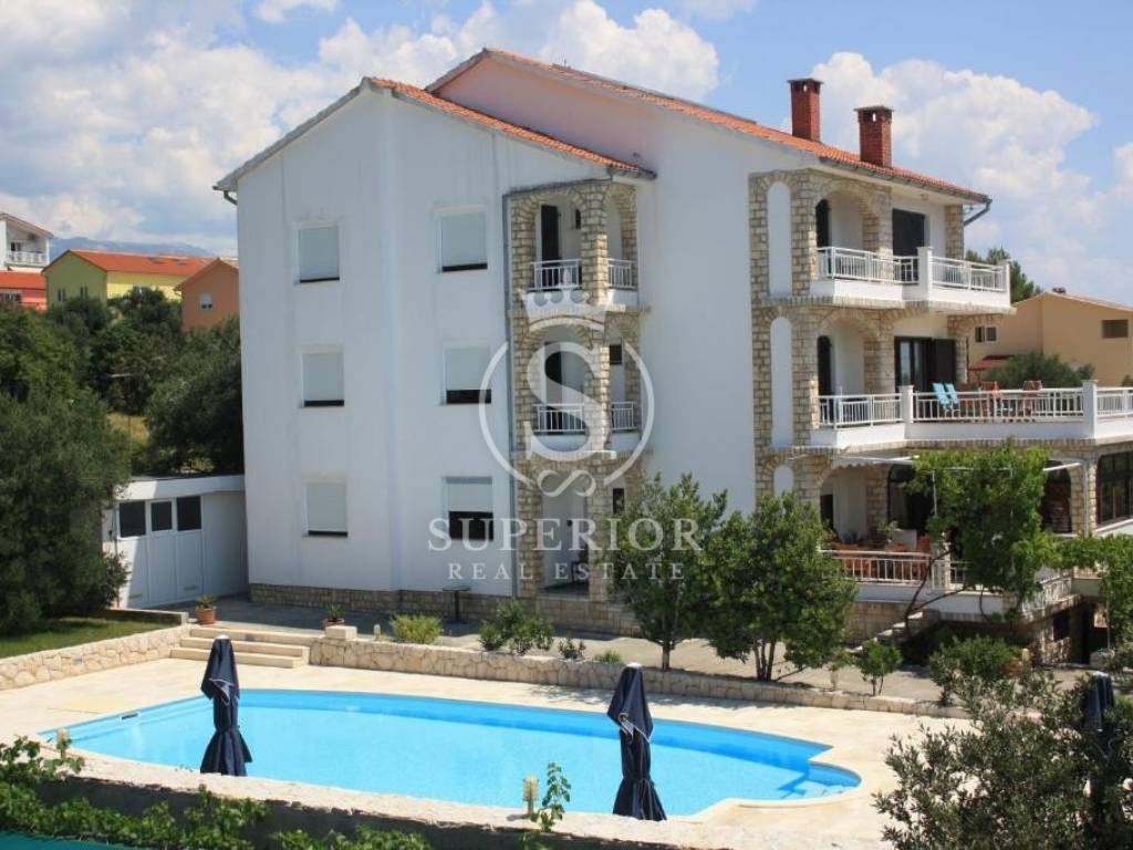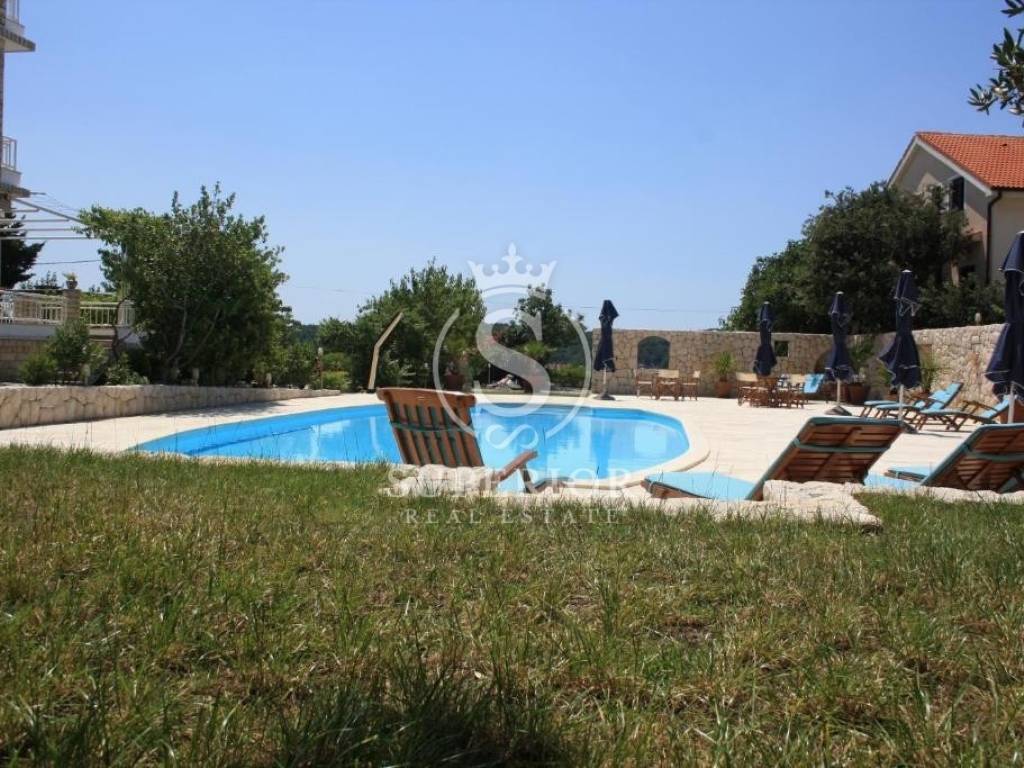 For sale is a detached villa located in Barbat on the island of Rab, with a total living area of 500 sqm, set on a spacious plot of 1,788 sqm, only 150 metres from the sea and the beach. The property is situated in an exceptionally attractive location, offering an ideal combination of privacy, comfort and proximity to the sea.