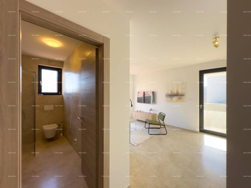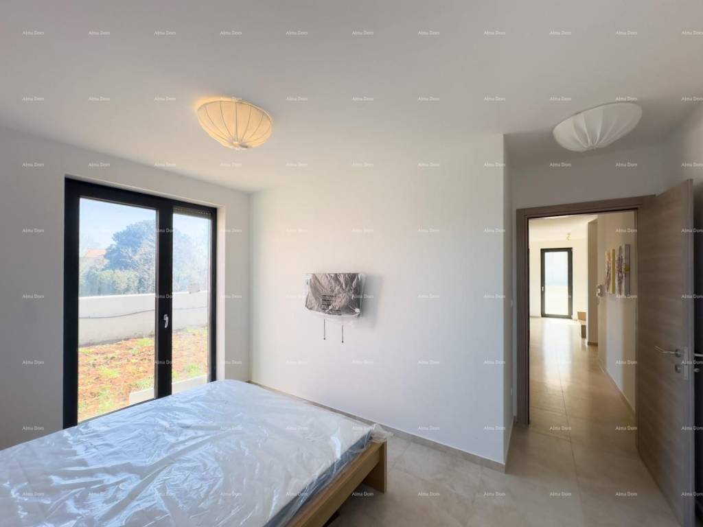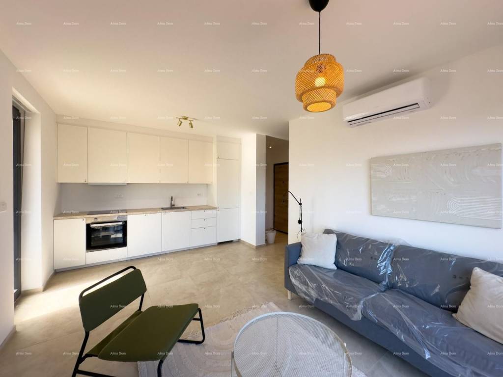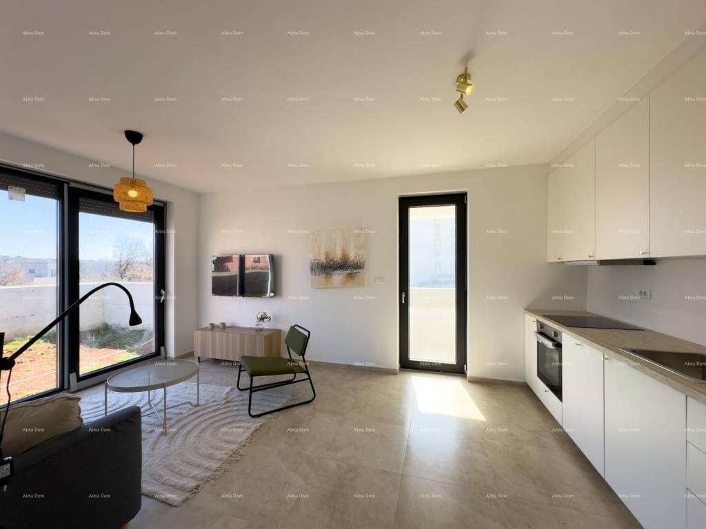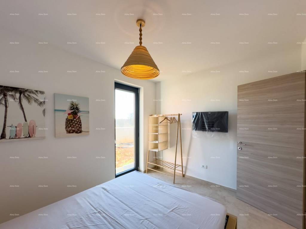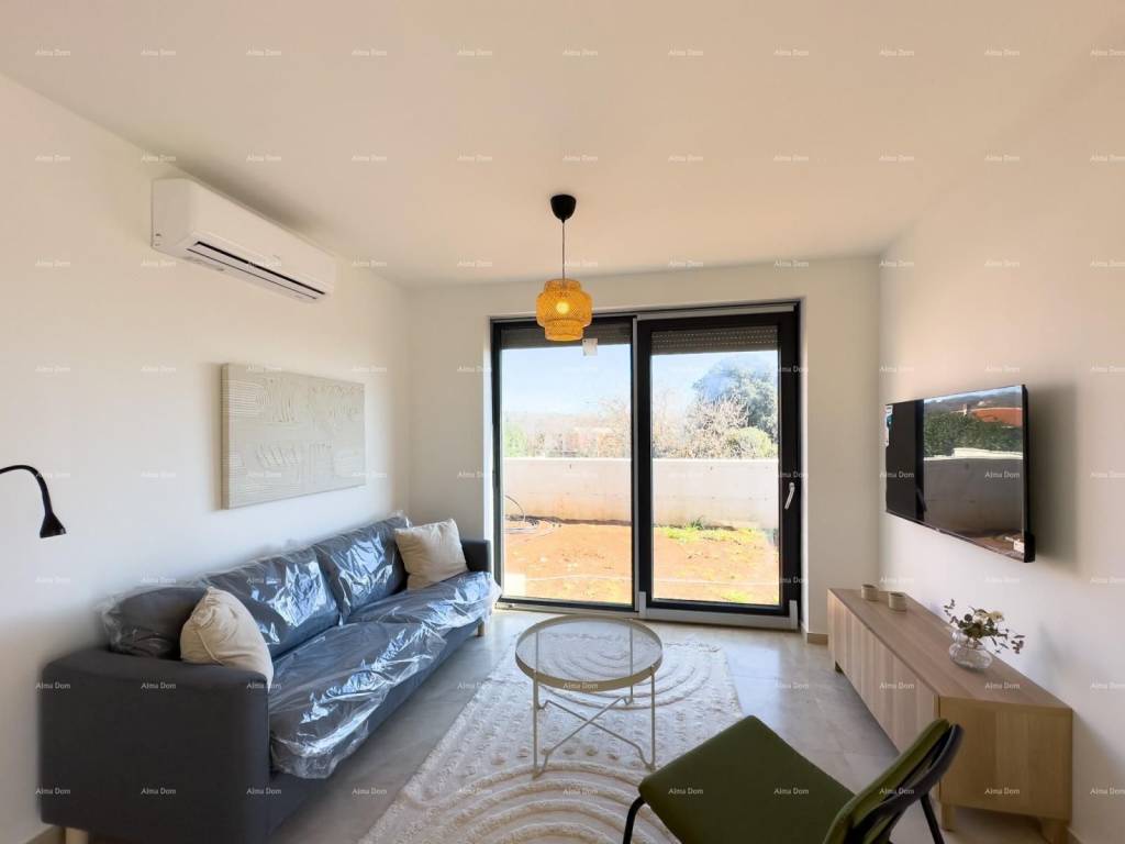 Mukalba, beautiful apartment in a new building, 500 m from the sea!We are selling an apartment with a garden and a swimming pool in a great location, Mukalba, Medulin! Fully furnished apartment. The apartment is located on the ground floor of a 2-story building. It consists of a hallway, 2 bedrooms, 1 bathroom, living room with kitchen, pool and garden 94.28 m2. Each room has an exit to the garden. The living room and bedrooms are air-conditioned.The apartment has 1 parking space and the parking lot will have an electricity connection, i.e. for charging electric vehicles.The net area of the apartment is 54.34m2Garden 94.28 m2 (94.28 x 0.10 = 9.43)PM E2 3.12m2TOTAL NET AREA 66.89For further information, please contact:Azra +385 91 611 5706+385 98 420 885azra@almadominvest.com