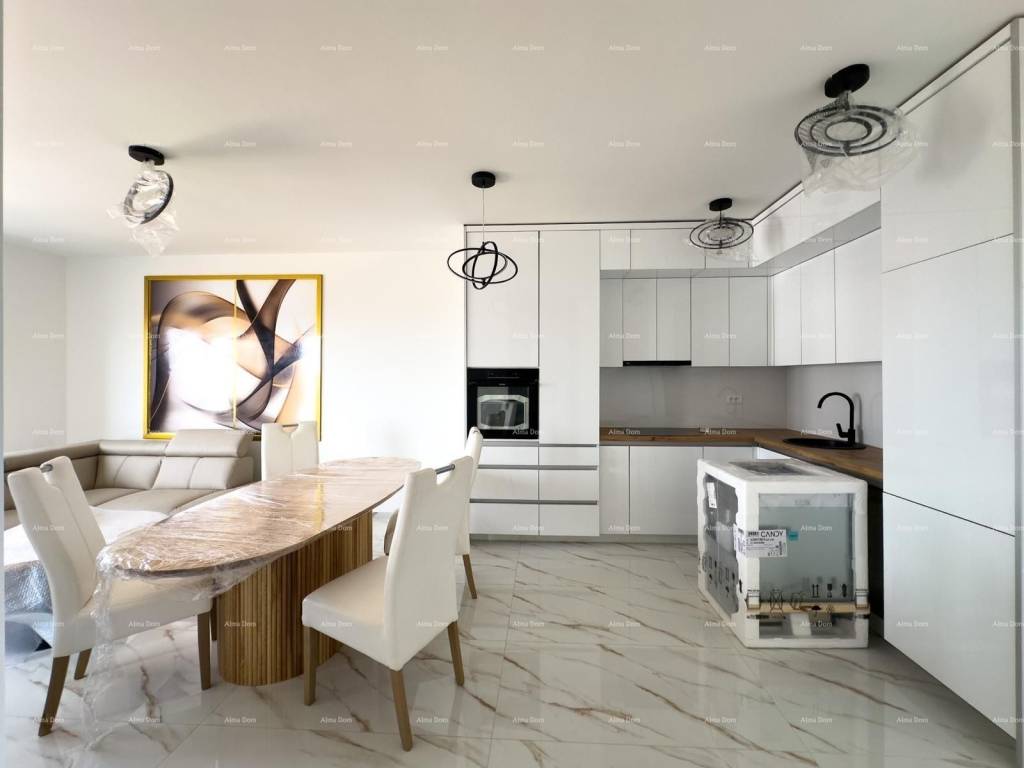 New on the Market!A beautiful new-build apartment, 112 m² in size, located in an excellent area just 5 minutes" drive from the city center.Situated on the first floor of a smaller residential building, this spacious apartment consists of an entrance hall, 3 large bedrooms, 2 modern bathrooms, an open-plan living room with a kitchen and dining area, and two spacious terraces.One terrace offers a lovely view of greenery, while the other provides a view of the city, adding extra value and making this home particularly enjoyable to live in.The apartment is sold fully furnished with brand-new furniture and appliances.Additionally, it includes a large storage room and 2 parking spaces.This property is a fantastic opportunity for a family home, offering both functionality and comfort in a great location. Don"t miss out!For more information, please contact:Azra+385 91 611 5706+385 98 420 885azra@almadominvest.com