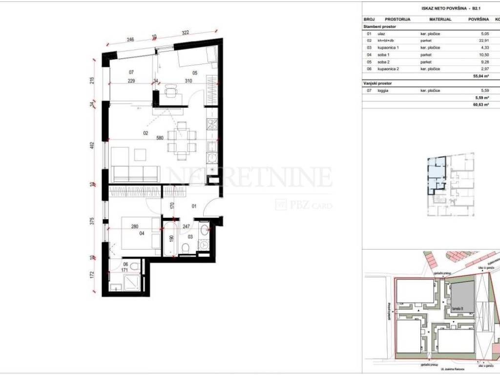 Površina stanova je u rasponu od 37,63m do 130,60m