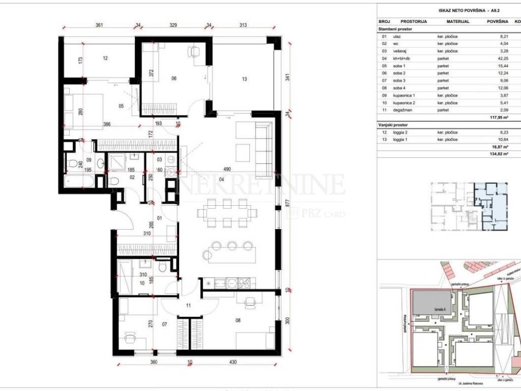 Površina stanova je u rasponu od 37,63m do 130,60m