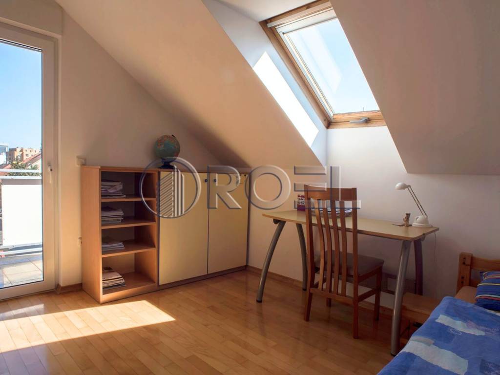 A spacious two-story apartment with a total living area of 162.18 m2 is for sale, located in a quiet street in the attractive location of Trešnjevka - North in Zagreb. The apartment is located in a smaller, high-quality new residential building from 2004, on the second and third floors of a total of three floors, which ensures privacy and a pleasant living environment.