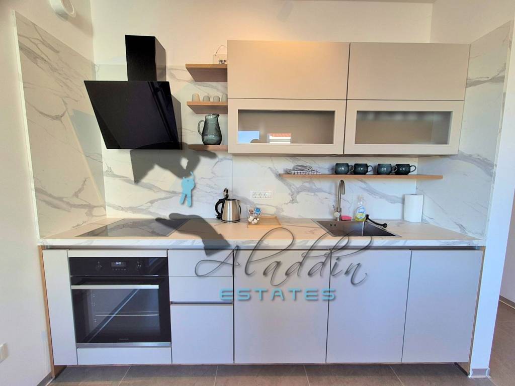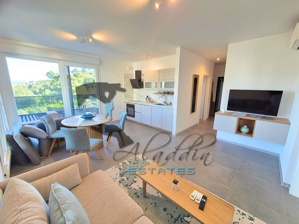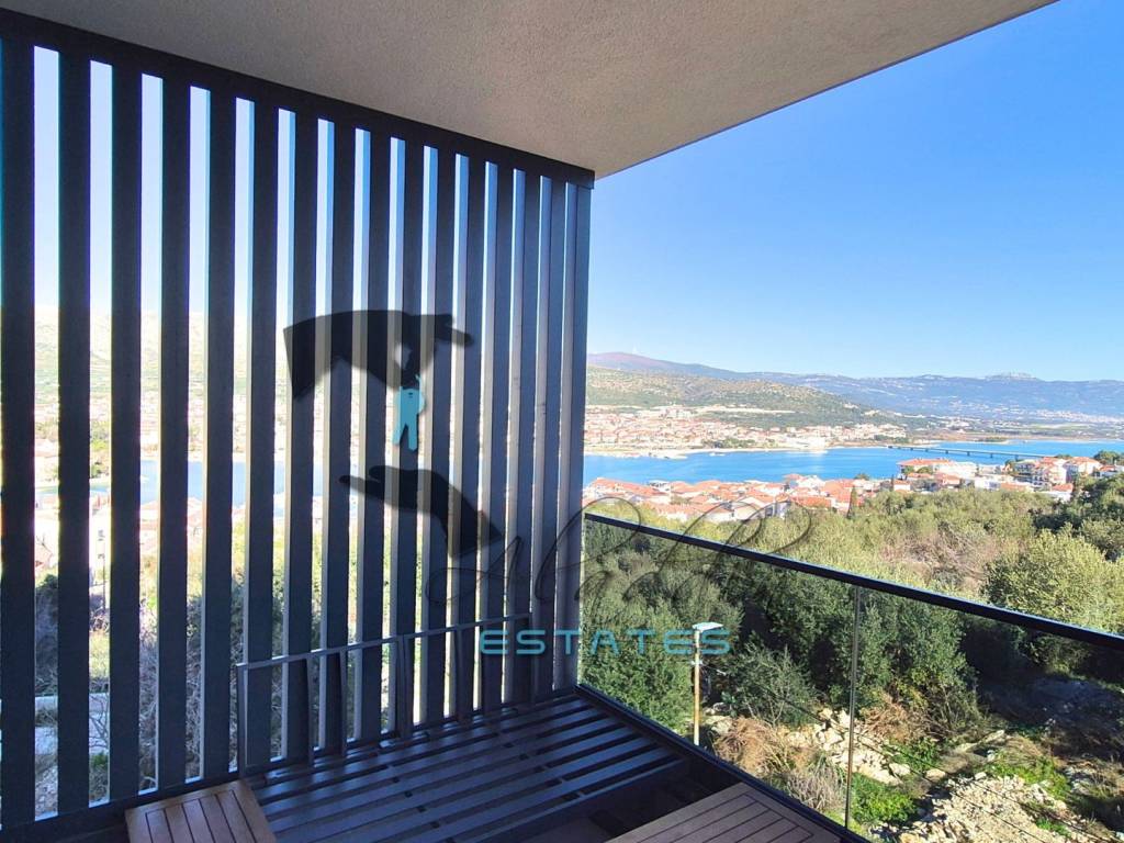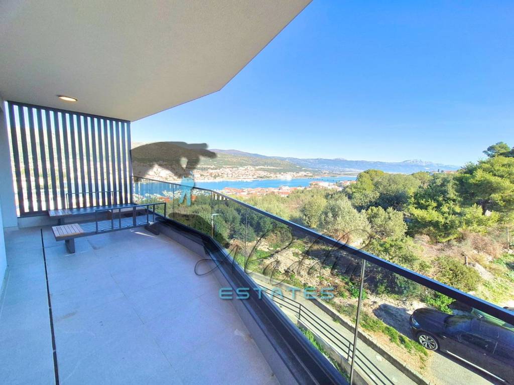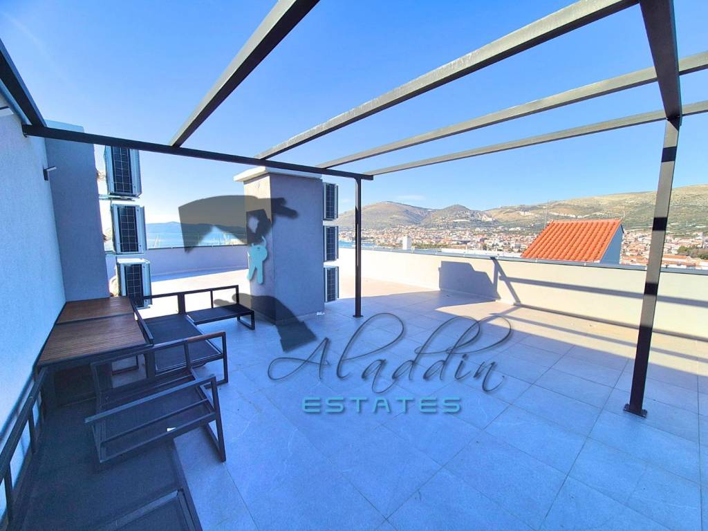 Прекрасный пентхаус в новостройке в Трогире на острове Чиово, на втором этаже жилого дома, с 88 квадратными метрами чистой жилой площади, по цене €370.000. Состоит из двух спален, ванной комнаты, коридора, столовой с кухней, гостиной и роскошного крытого балкона с исключительным видом на море. К квартире также прилагаются два больших гаражных парковочных места, кладовая в подвале и впечатляющая крытая терраса с непревзойденным видом на море и проведенными коммуникациями для летней кухни. Кратко о квартире: