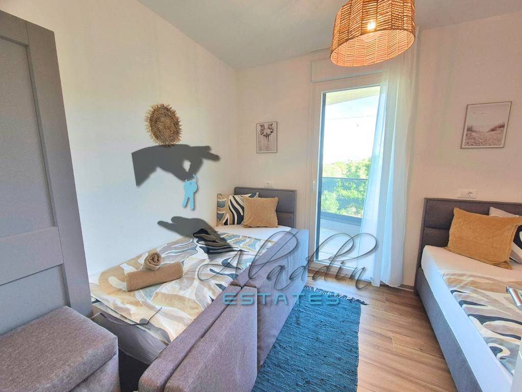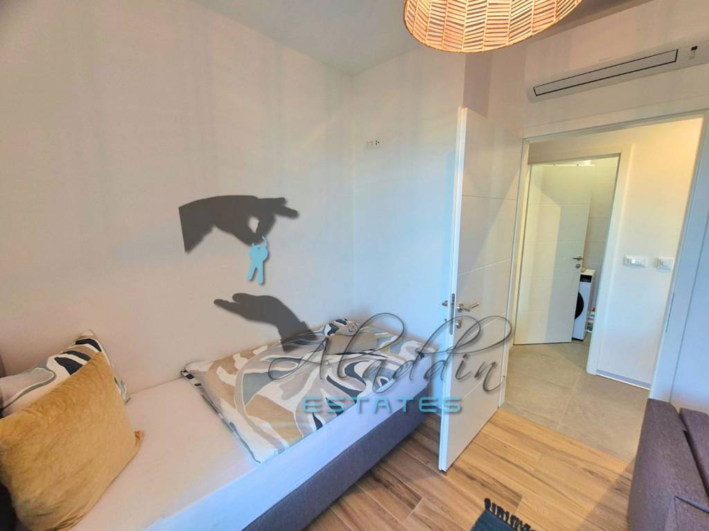 Здание оснащено лифтом, который обслуживает все этажи от подвала и гаража до второго этажа. Квартира построена по самым высоким стандартам и оснащена всем необходимым, включая кондиционеры Daikin в каждой комнате, теплый пол в ванной, первоклассные ПВХ окна с тройным стеклопакетом и москитными сетками на всех окнах и балконных дверях, электрические ролеты, высококачественный ламинат в спальнях и современные плитки в остальных помещениях, отлично оборудованную ванную комнату, бронированные и противопожарные входные двери, видеонаблюдение, превосходную тепло- и гидроизоляцию, ограждение и гаражные ворота с дистанционным управлением. Квартира полностью готова к проживанию, оформлена в собственность и полностью меблирована, получено разрешение на эксплуатацию, а также разрешение на ведение туристической деятельности.