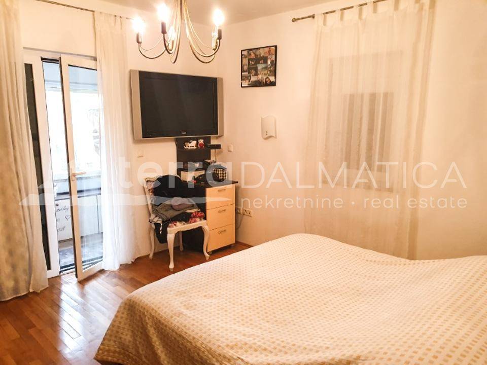 An attractive apartment with a yard in Podsolarsko is for sale. The apartment is located on the ground floor and has a total of 84 m2 and the same amount of yard space. The interior consists of a living room, kitchen, hallway, 2 bedrooms, 2 bathrooms and 2 enclosed loggias, while the outdoor area consists of large back yard, staircase with entrance to the apartment, storage under the stairs and outdoor parking. In the yard there is a fireplace and a great space for socializing. The apartment is southwest oriented and therefore very warm and sunny. Very quiet and peaceful microlocation, only 400 meters from the sea and the same distance to the popular beach Rezalište. Podsolarsko is a newer neighborhood full of high-value and exclusive real estate, only a few minutes drive from Šibenik. Nearby is Zablaće, a picturesque place full of beautiful beaches and Solaris, a beautiful tourist resort.