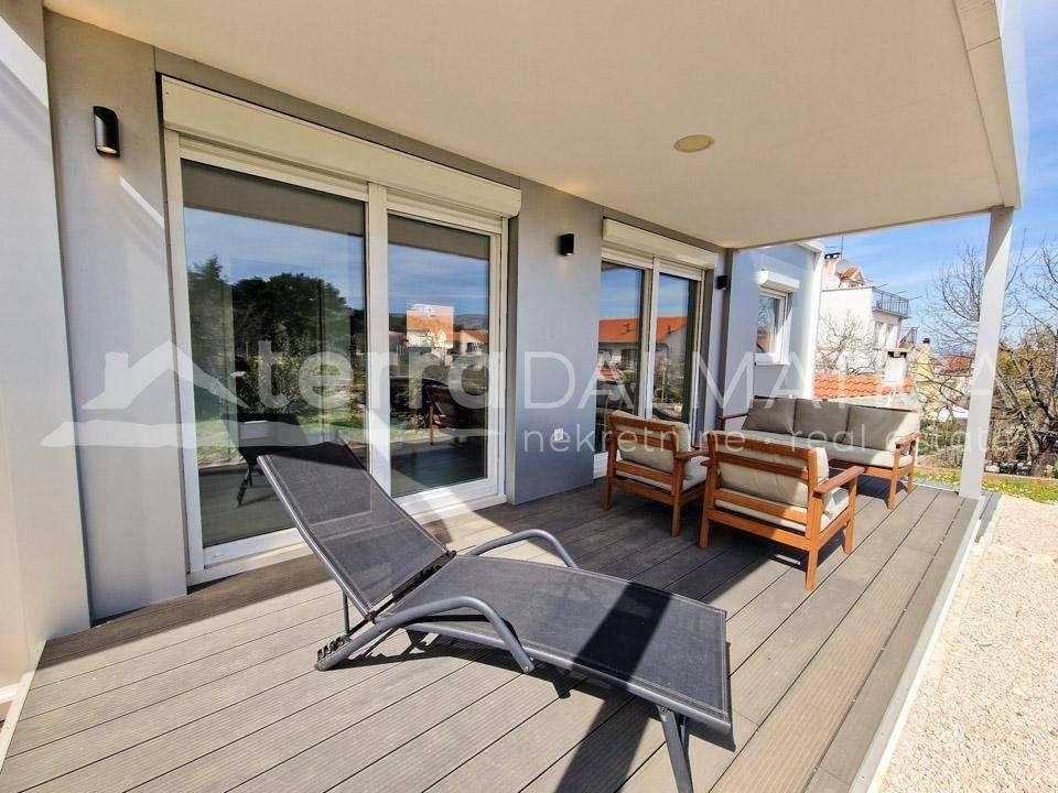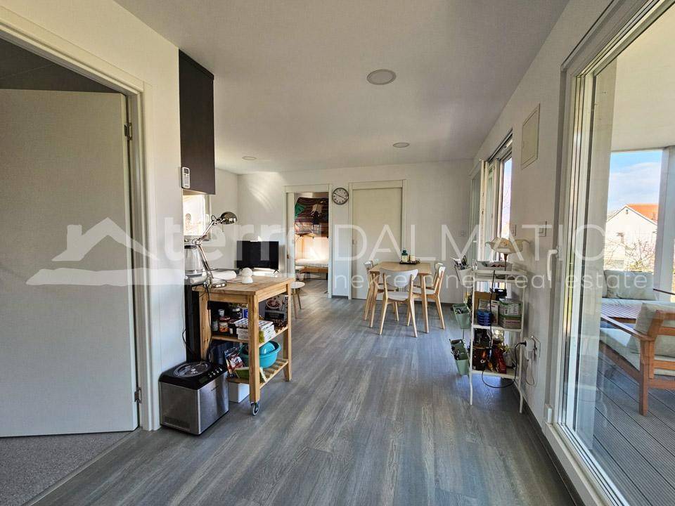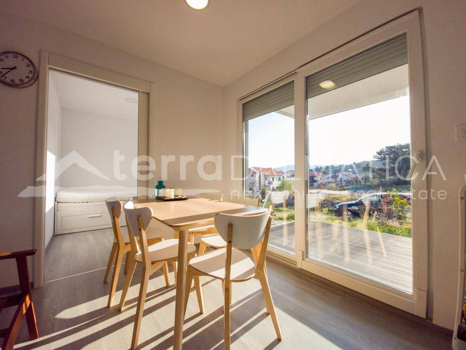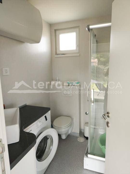 A bungalow in a quiet location is for sale in Sibenik. The house is of prefabricated construction and is located in a dead end street on a plot of land of 442 m2. It consists of an entrance, kitchen, dining room, living room, two bedrooms and a bathroom. From the living room you can access a spacious covered terrace. The house is equipped with air conditioning and electric underfloor heating, so the house is suitable for living all year round. Considering the size of the yard, the future owner is offered various possibilities for its decoration. Sibenik is a beautiful medieval city with one of the most beautiful historical centers on the Adriatic and a rich history. It is decorated with numerous narrow streets, palaces and stone houses. The most beautiful and important cultural monument is the Cathedral of St. James. In the vicinity of Sibenik are two national parks, Krka and Kornati, as well as the cities of Zadar, Trogir, Split and the airport. Contact our agent and schedule your tour.
