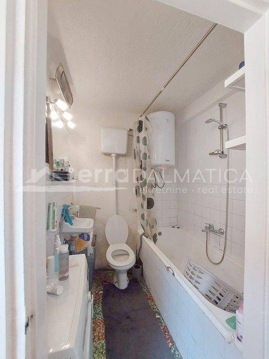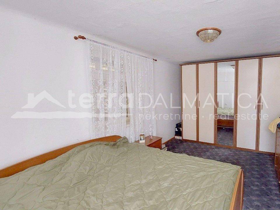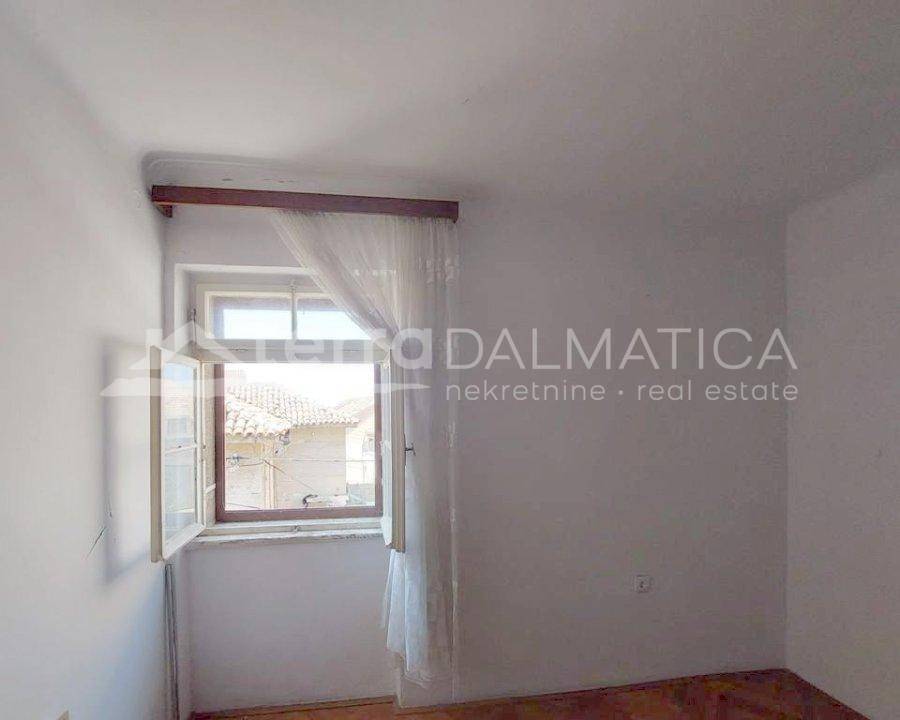 Semi-detached house for sale in the center of Sibenik, in dead-end street without traffic that offers peace and quiet. The house is semi-detached, with a total usable area of about 78 m2, evenly distributed over three floors. On the ground floor there is a front entrance, a living room, a kitchen with a dining room and a bathroom. External stairs lead to the first floor, which is connected to the second floor by internal wooden stairs. Those upper two floors consist of a total of four bedrooms, two per floor. Around the house, the common area of the garden is divided into vehicular access and a green area. The interior of the house is currently used as a residence and renovation would be necessary, Regardless of the need for additional investment, this property still remains a good price opportunity to get a three-room apartment in the center in a good location for tourism and housing.