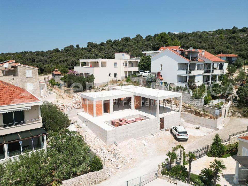 A plot of land with a partially constructed villa and pool is for sale in the beautiful bay in surroundings of Rogoznica. This luxurious villa will have a total area of 242 m², offering a perfect blend of modern architecture, comfort, and elegance. The ground floor of the villa is planned to include a kitchen, open-concept living and dining area, ideal for family gatherings. Additionally, the ground floor features a socializing room, bathroom, and storage. The living room opens onto a spacious terrace with a 21 m² pool, perfect for relaxing and enjoying sunny days. The first floor of the villa will house three spacious bedrooms, each with its own bathroom, providing maximum privacy and comfort for all family members and guests. The villa guarantees a sea view, is situated in a quiet bay, and is just 100 meters from a beautiful beach, ideal for family vacations and relaxation. All necessary building permits have been obtained, ensuring a quick and smooth continuation of construction. This property represents an exceptional investment opportunity in a luxury villa at one of the most attractive locations on the Croatian coast. For more information and to arrange a viewing, please contact us.
