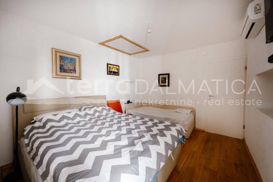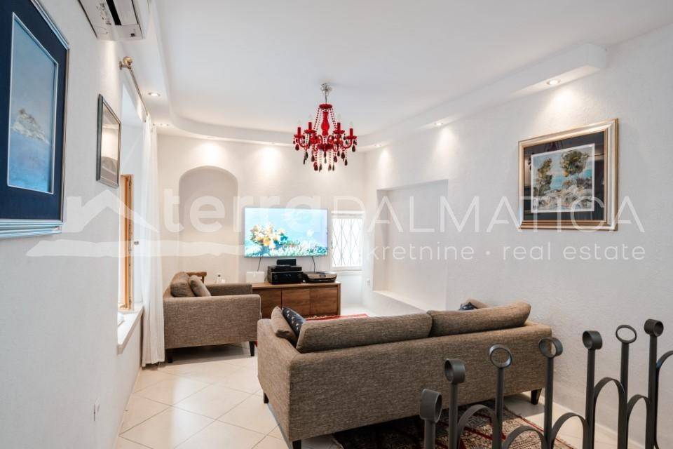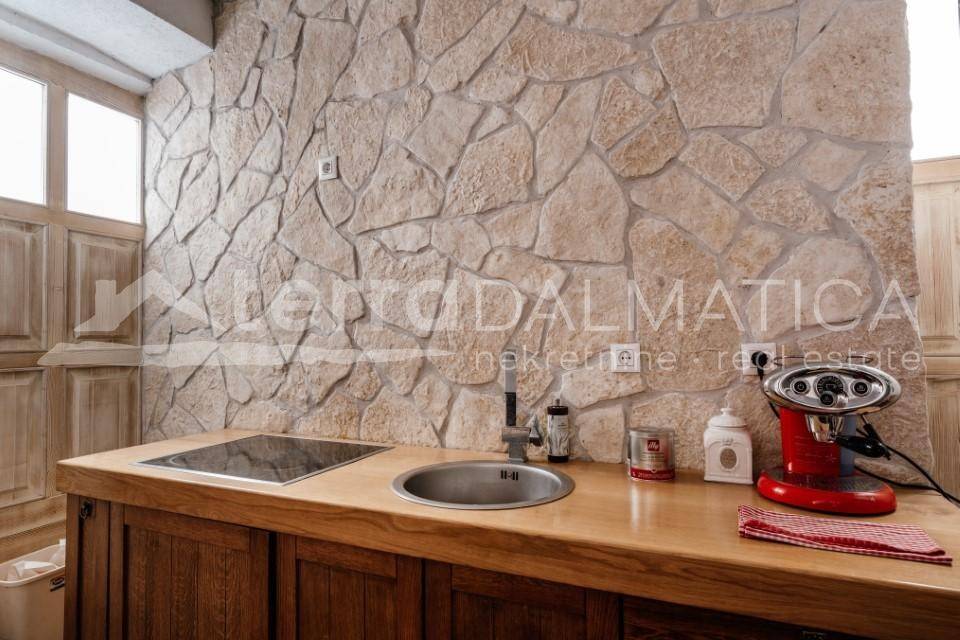 A beautifully renovated stone house is for sale, located in the very heart of Šibenik's historic core, near one of the most beautiful squares in the city, next to St. John's Church and the Draganić Palace. This charming property represents a perfect blend of authentic Dalmatian spirit and modern comfort. The house spans three floors, and during the renovation, high-quality natural materials were used to preserve its original aesthetics and ensure long-term durability. The stone façade has been expertly restored, while the interior features high-quality oak parquet and stone flooring. The windows and doors are made of solid wood, with handcrafted details that further emphasize the house's authentic character. Modern insulation materials have been used to ensure energy efficiency, and all electrical and plumbing installations are brand new. Layout: The ground floor features a functional kitchen and dining area, with stone details adding a special charm. The first floor houses a spacious living room, ideal for relaxing in a cozy home atmosphere. The second floor offers a comfortable bedroom with a modern bathroom. Above the bedroom, the attic can be converted into an additional bedroom or workspace. The interior staircase, adorned with a handcrafted wrought-iron railing, connects the floors and enhances the elegance of this unique property. The house is sold unfurnished, allowing the future owner to decorate it according to personal preferences. Location: Situated in the heart of medieval Šibenik, a city rich in history, known for its narrow stone streets, magnificent palaces, and historical landmarks. It is just a few minutes' walk from St. James' Cathedral, a UNESCO World Heritage Site, as well as various cultural and gastronomic attractions. The city's Banj beach is only a 10-minute walk away, while two national parks, Krka and Kornati, are also nearby. Šibenik is well-connected to other Adriatic cities such as Zadar, Trogir, and Split, with an international airport just a 45-minute drive away. Opportunities: This property represents an excellent investment—whether you are looking for a home with character in the heart of Dalmatian history or a profitable opportunity for tourist rental. Due to its attractive location and top-notch renovation, the house offers high investment return potential. Don't miss the chance to own a piece of Šibenik’s history! Contact us and book your viewing today.