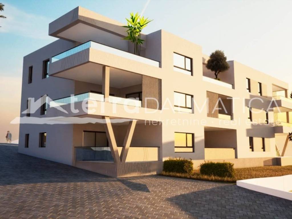 A high quality apartment for sale in a quiet part of Vodice , on a gentle hill with an open sea view. The apartment is located on the second floor of a modern residential building. The building will have a total of ten residential units and is designed with an emphasis on comfort and functionality.