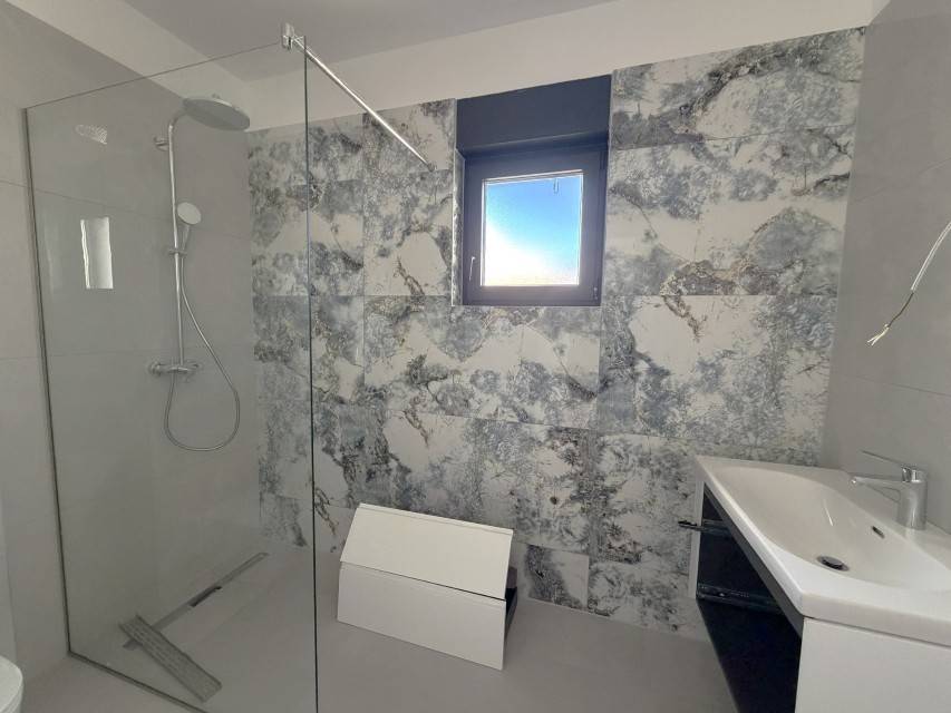 Quality materials are used in the construction. Underfloor heating is planned in the bathrooms, and all rooms are equipped with air conditioning for heating and cooling. The apartment has an anti-burglary system , and the completion of the works is planned for spring 2026 . The property includes two parking spaces .