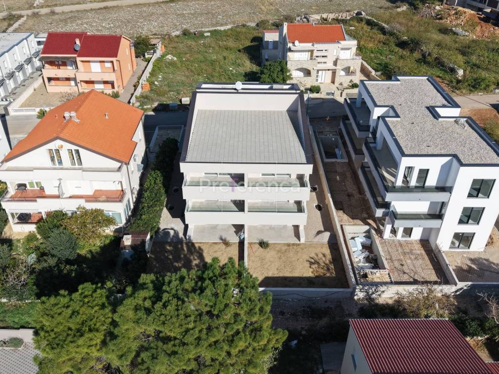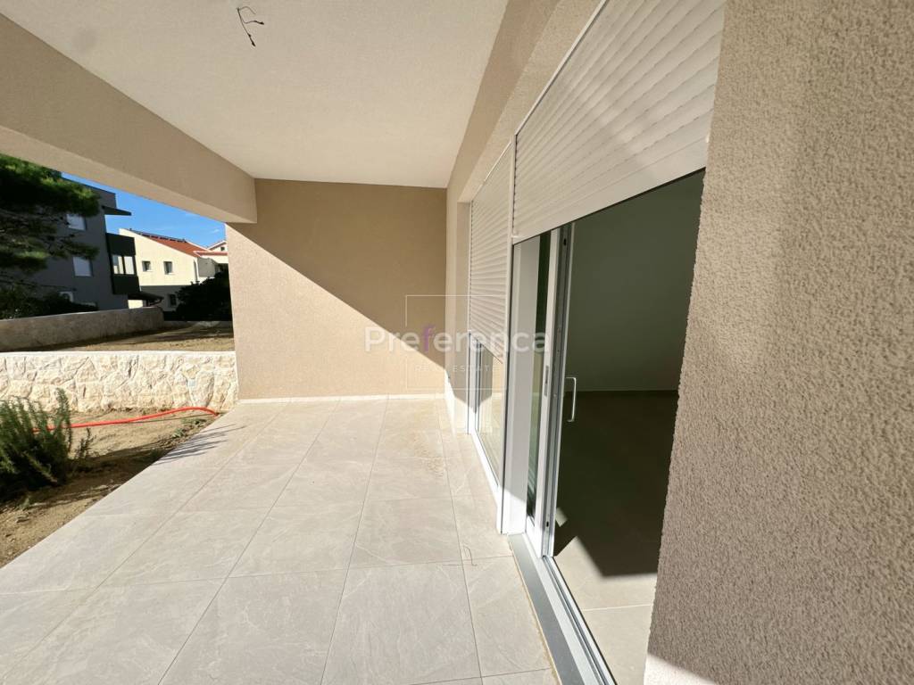 В тихом районе Повляны, всего в 750 метрах от моря, находится квартира S2 на первом этаже новостройки с общим количеством шесть жилых единиц.