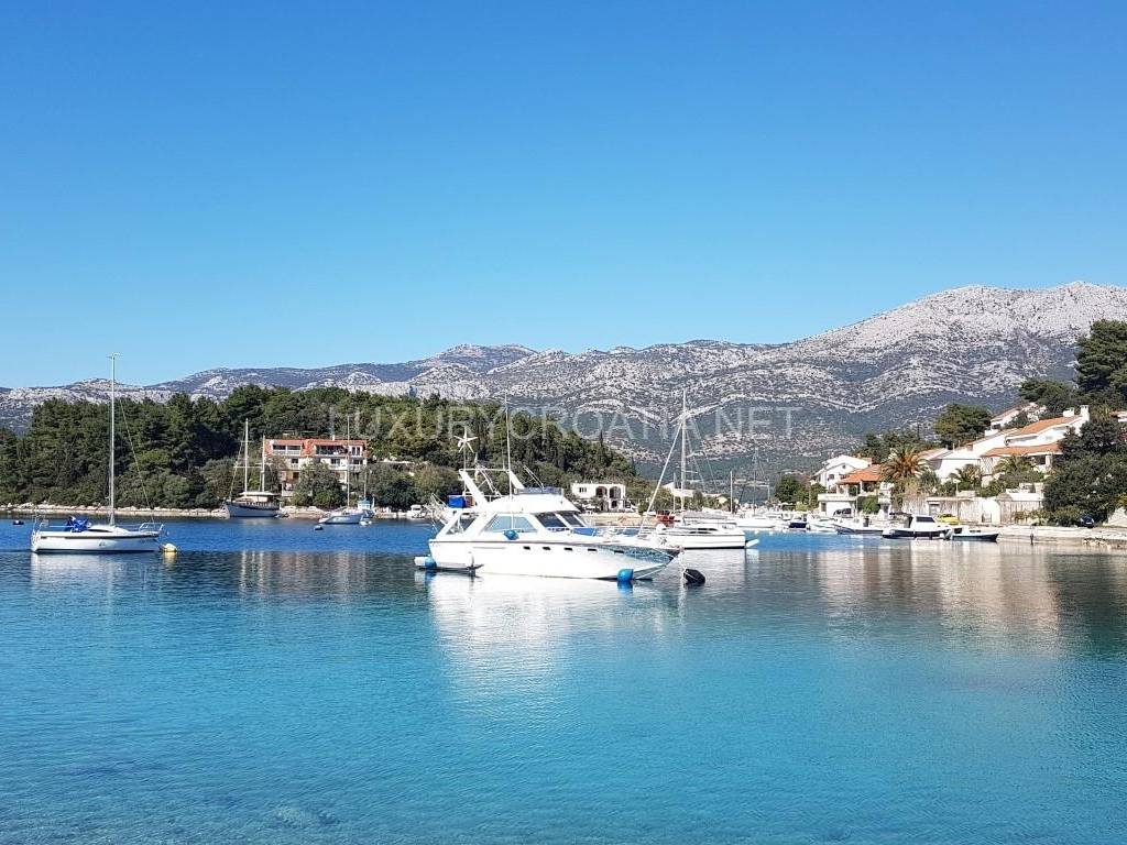 This waterfront villa with pool for sale Korcula town Croatia is located in a quiet bay on the outskirt of the Korcula town.