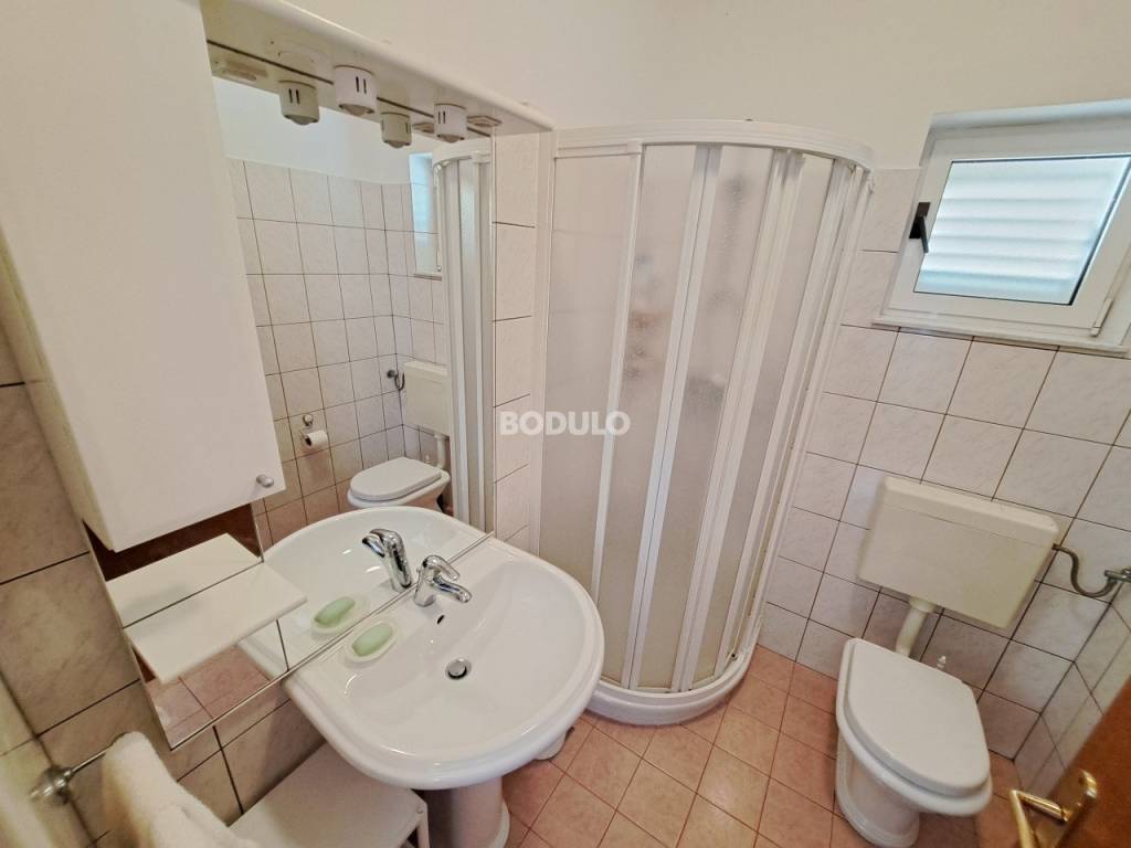 In the idyllic and charming hamlet of Muline, the last hamlet of the village Ugljan on the island of Ugljan, for sale is a spacious family house with an area of 248.49 m2. It is located at a distance of only 300 meters from the crystal clear sea and beautifully decorated beaches for which the hamlet of Muline is famous. It is located in a quiet location where there is not too much crowd and noise even in the summer months. It is surrounded by family houses with spacious, beautifully landscaped gardens. Access is provided via a local road that is used only by the residents of several neighboring houses (dead-end street), which also guarantees a relaxing atmosphere on this location. The house is built on two floors, which are connected to each other by external and internal stairs. On the ground floor of 122.40 m2 there is a summer kitchen with a built-in grill and a dining room, a storage room, a small laundry room, a toilet, a bedroom and two spacious garages. On the first floor of 126.09 m2, there are 3 bedrooms, one of which has its own bathroom and balcony, a bathroom, a toilet, a kitchen and a beautiful spacious living room with a dining room and an exit to the terrace. The terrace is covered and faces west, so it offers a partial view of the sea and greenery that surrounds this property, as well as the beautiful sunset scenes characteristic for the hamlet of Muline. The total area of the land on which the house is located is 1129 m2. The yard is partly paved and partly planted with olive trees, citrus fruits and flowers. Due to its size, but also the shape of the plot, the garden leaves additional possibilities for arrangement - building a swimming pool, a gazebo for resting and enjoying with friends, etc. The house was built in 2002 according to the wishes and needs of a large family. It has been properly maintained and is in excellent condition. It has a water tank, but also a city water connection, as well as its own septic tank. The house is fully air-conditioned (heating/cooling) and adapted for a pleasant stay throughout the year. Furniture isincluded in the price of the property.