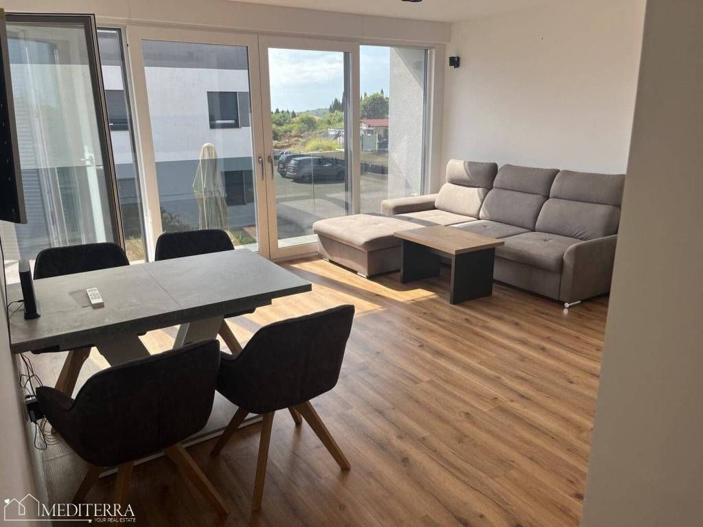 The apartment is located 1.5 km from the center of Novigrad. It consists of an entrance hall, living room and kitchen in one open open space, two bedrooms and a bathroom.