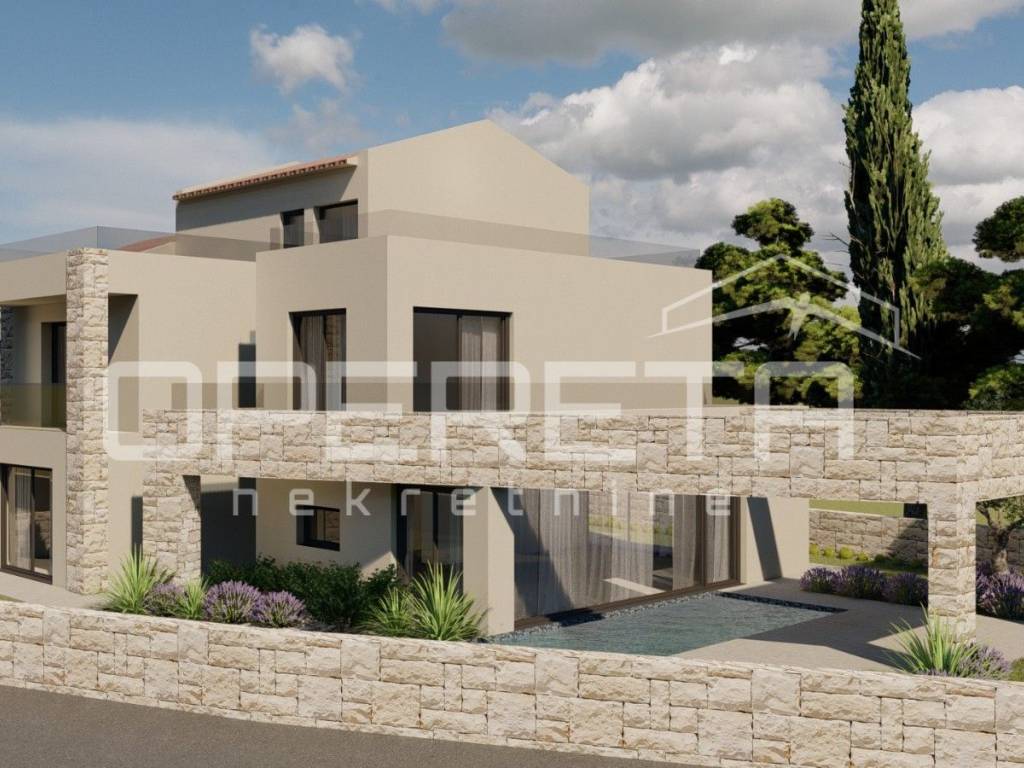 Iz ponude izdvajamo građevinsku parcelu površine 552 m s pravomoćnom građevinskom dozvolom, plaćenim komunalnim doprinosom i projektom za objekt stambene površine 255,68 m te bazenom površine 30 m2 s izgrađenim temeljima