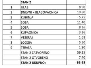 The apartment consists of two bedrooms, bathroom, living room with dining room and kitchen. It also has a terrace of 1.90 m and a loggia of 5.50 m. It is possible to buy an outdoor parking space with the apartment at a price of EUR 5,000.