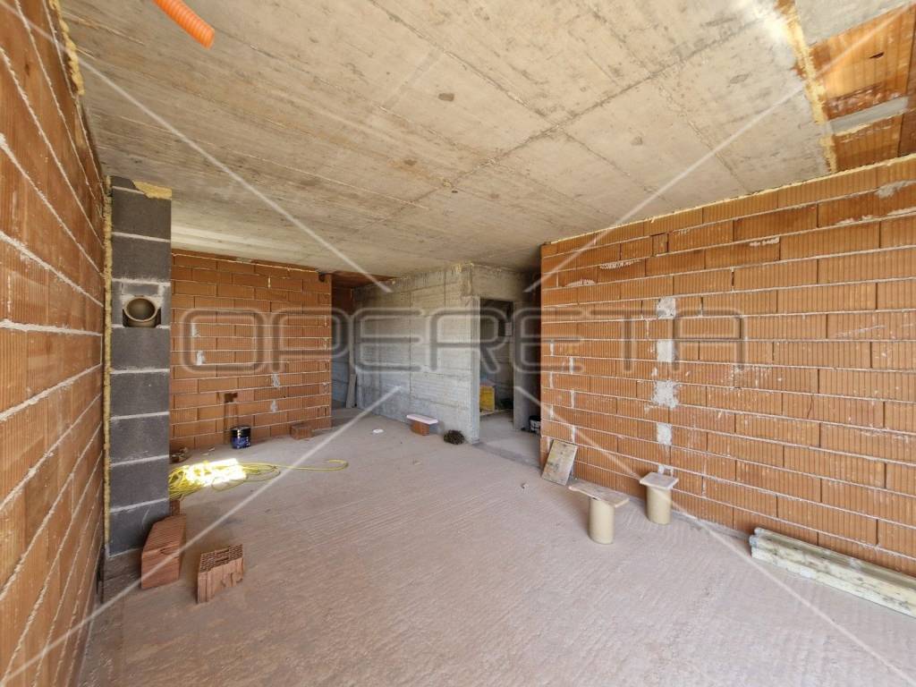 The apartment also has a garden, whose area and price will be defined later. Air conditioning and a fireplace are provided for heating. The orientation of the apartment is towards the west and south. The carpentry is PVC, the rooms have laminate, while the other rooms have tiles. It is possible to subsequently agree on changes in the interior decoration (such as the installation of parquet instead of laminate and the selection of tiles).