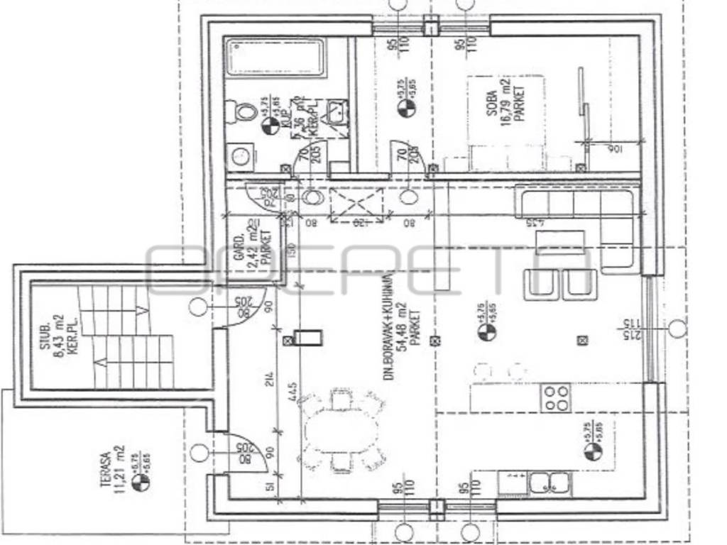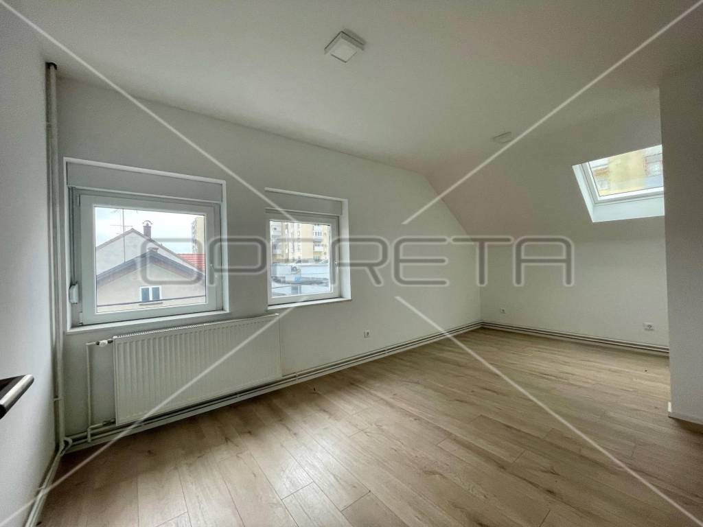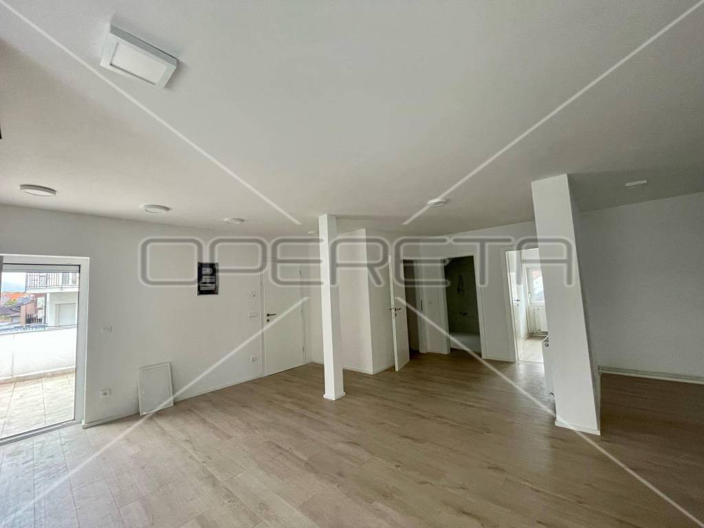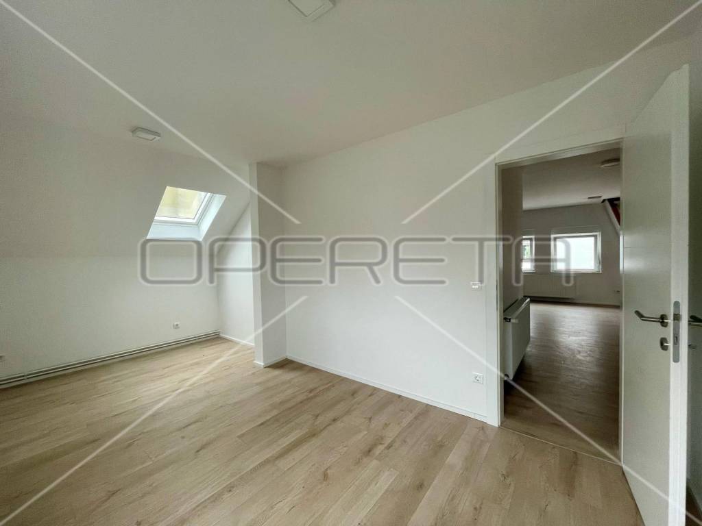 Kompletno novouređena zgrada i stan u 2023 godini. Stan se sastoji od velikog open space kuhinje/boravka, kupaone, spavaće sobe, garderobe i terase. Stan ima i direktan pristup neuređenom tavanu od 35m2 koji se može uredit za dodatni životni prostor, još dvije spavače sobe.