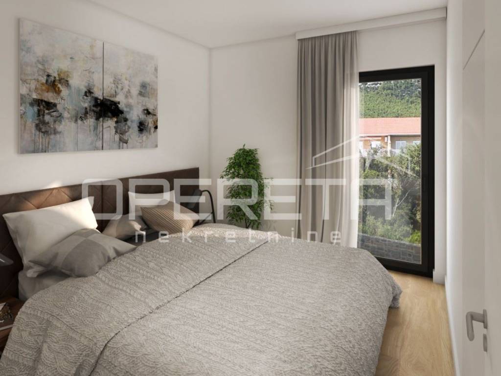 This property offers a spacious two-bedroom apartment located on the first floor of a modern new building in one of the quietest areas of Orebić. With a total area of 89 m, the apartment provides exceptional comfort through two elegant bedrooms, a bright living room with a modern integrated kitchen, two designer bathrooms, and two loggias that further connect the interior.