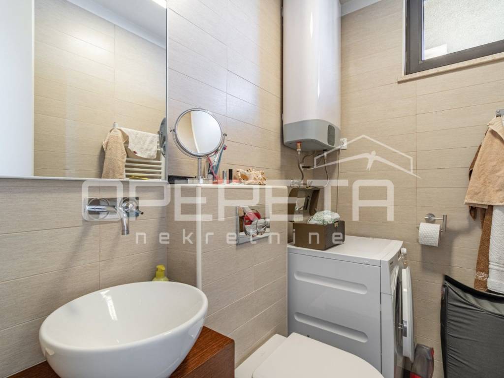 The property is modernly decorated and exceptionally well-maintained. A significant benefit is that it's sold with furniture, excluding the owner's personal belongings, allowing for immediate move-in without extra worries. For optimal comfort throughout the year, there are air conditioning units for heating and cooling, and cozy underfloor heating. An added value to this property is the secured parking space in the garage.