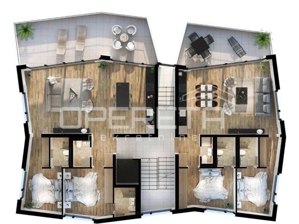A spacious luxury apartment on Korčula with a breathtaking sea view offers a unique opportunity to enjoy modern design and top-notch comfort in one of the most desirable locations on the Adriatic. Situated in a prestigious complex in the second row from the sea, the apartment spans 67.69 m of living space, complemented by a 15.71 m terrace and a 12.50 m garage parking spot. With a total net usable area of 77.87 m, the apartment is perfectly designed for comfortable and luxurious living.