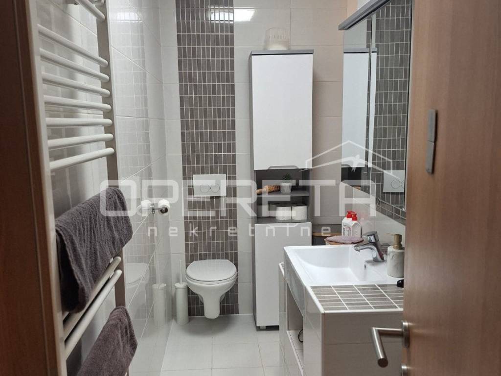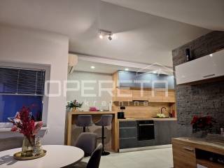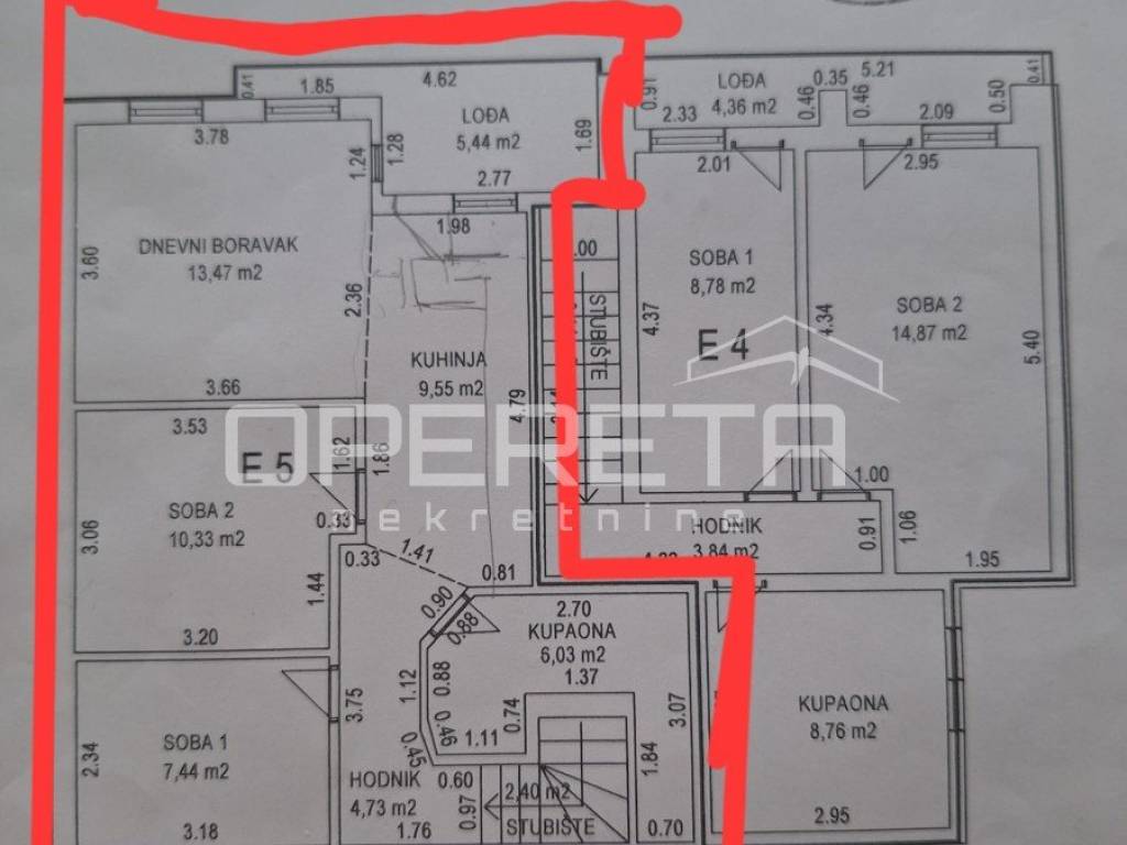 ODLIČAN NOVIJI STAN U CENTRU. 61 M2. PRODAJA. Potpuno opremljen trosobni stan na odličnoj lokaciji na par minuta hoda od trgovačkog centra, 10 minuta hoda do korza i 7 minuta do starog grada. Vrlo uredan i održavan, sagrađen 2012. godine. Etažno plinsko grijanje u kombinaciji s podnim grijanjem i radijatorima (kupaona, hodnik i kuhinja s blagovaonom imaju podno grijanje, a sobe radijatore). Kupaona ima "walk in" kadu i posebni prostor za sušilicu i perilicu rublja. Prostrana lođa omogućava boravak na sviježem zraku i puno svijetlosti u stanu. U zgradi su još 4 stana i pripada mu jedno parkirno mjesto uz zgradu. Prodaje se potpuno namješten. Ima uporabnu dozvolu i svu urednu dokumentaciju.