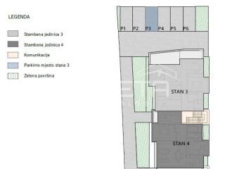 Ukupno je osigurano 6 parkirnih mjesta. Uz svaki stan obavezna je kupnja minimalno 1 parkirnog mjesta, uz mogućnost dodatnog.