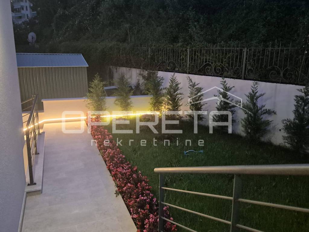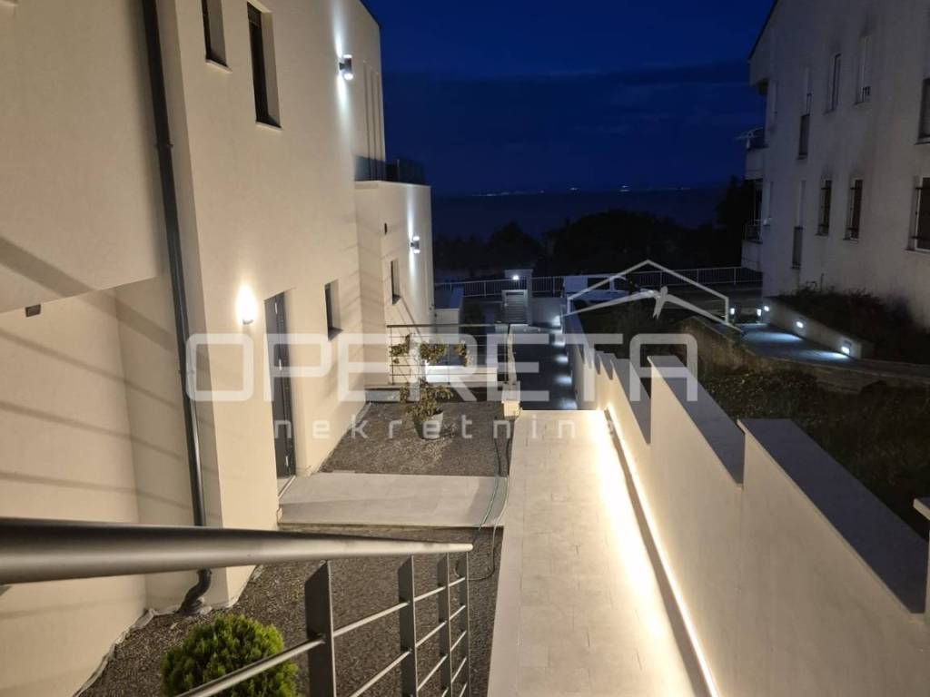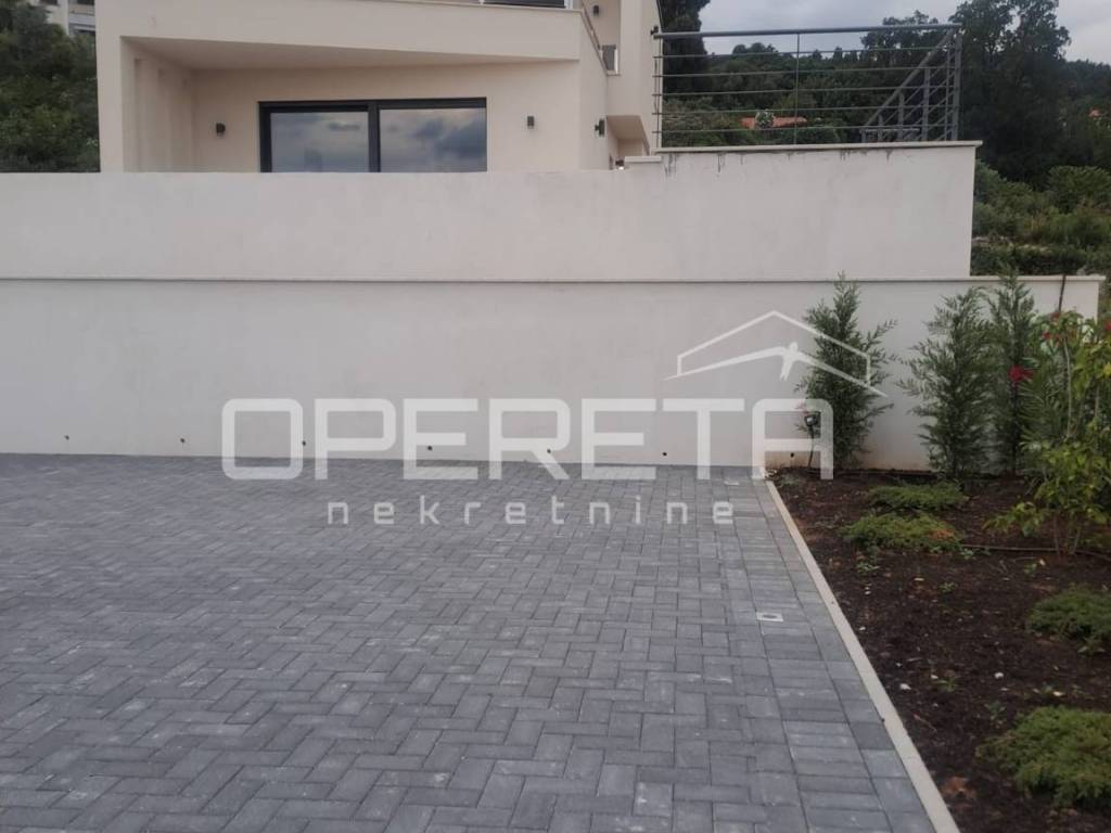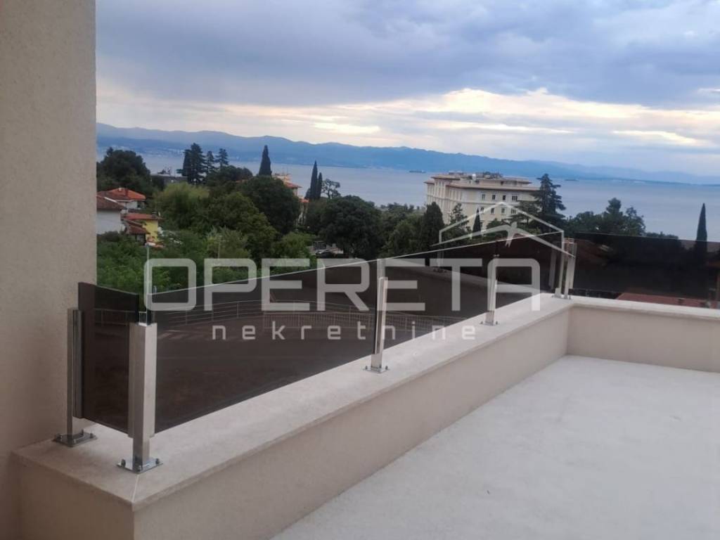 Located in the center of Lovran, this elegant 140m ground-floor apartment offers panoramic sea views, two master bedrooms with en-suite bathrooms, a third room, and an additional bathroom. Direct access to a private terrace, saltwater pool, and sun deck. Sold in advanced shell condition allowing customization. High-efficiency heat pump system, private parking, and 15m storage. Only minutes from the sea and all local amenities.