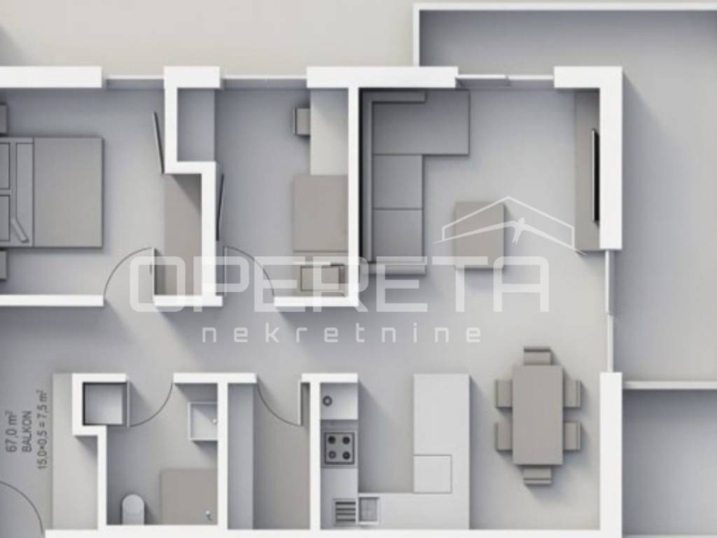 Uz stan se prodaje i najmanje 1 vanjsko parkirno mjesto po cijeni od 10.000 eura.