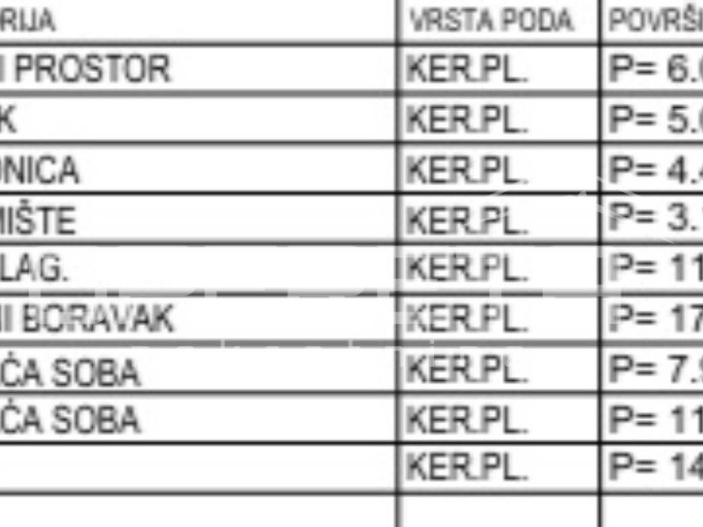 Vanjska stolarija u PVC izvedbi sa izo staklom, a unutarnja aluminijske i drvene izvedbe.